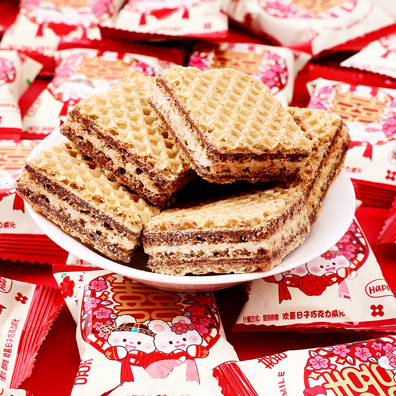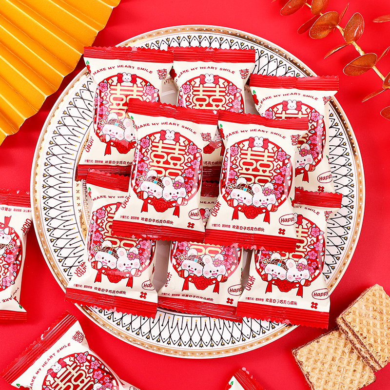 欢喜日子威化饼干喜饼结婚喜糖休闲零食订婚礼糖果批发散装满月宴