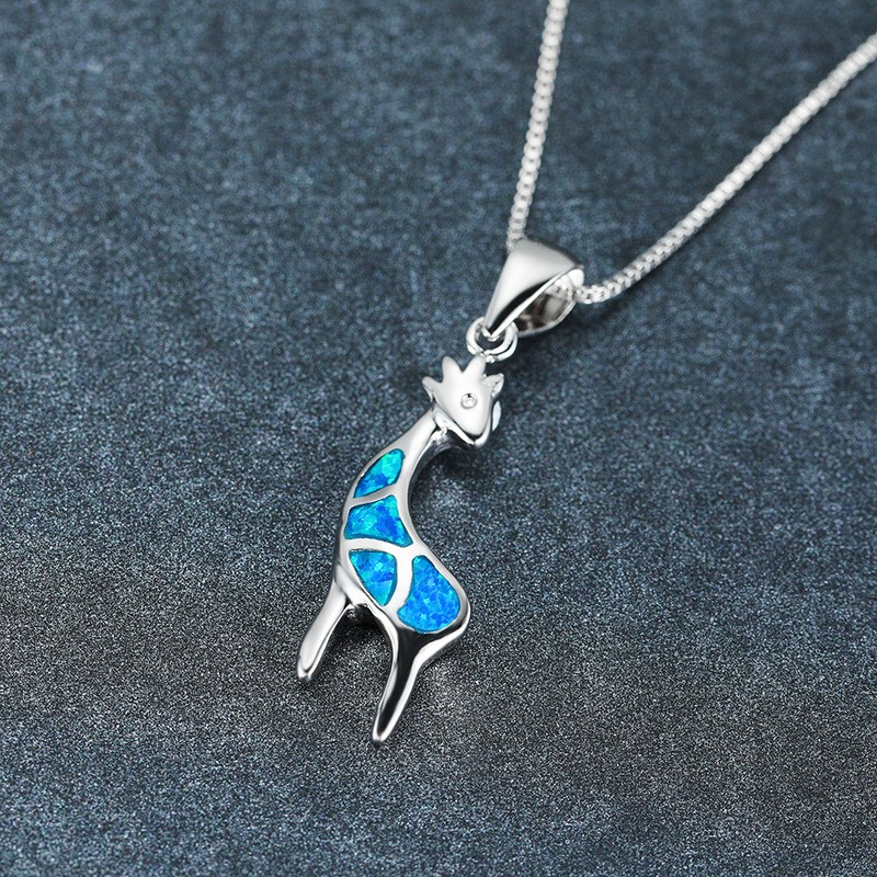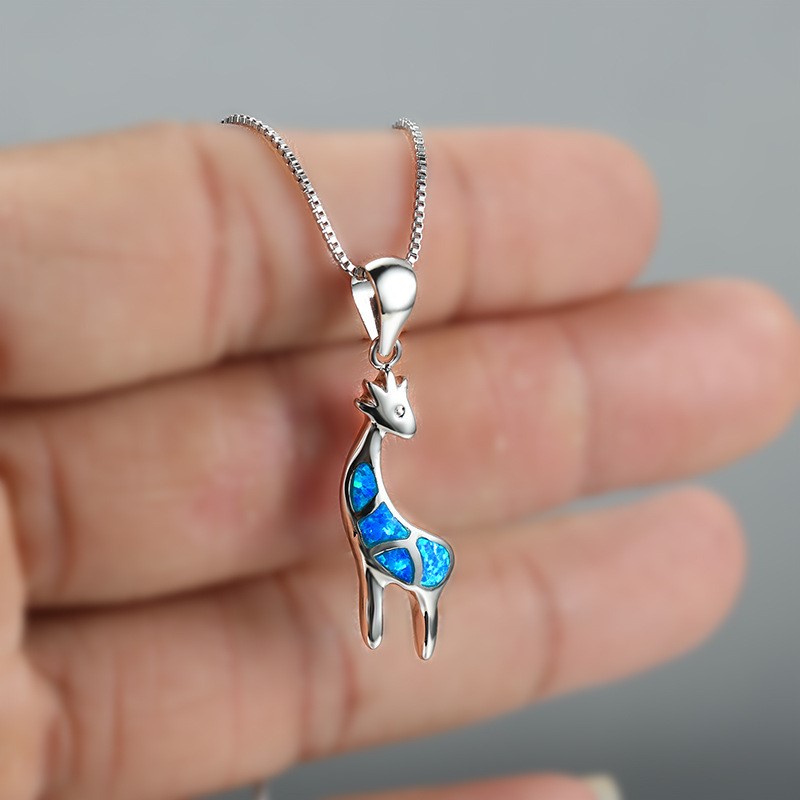 新款欧美时尚蓝色澳宝长颈鹿项链跨境热卖气质动物吊坠锁骨链