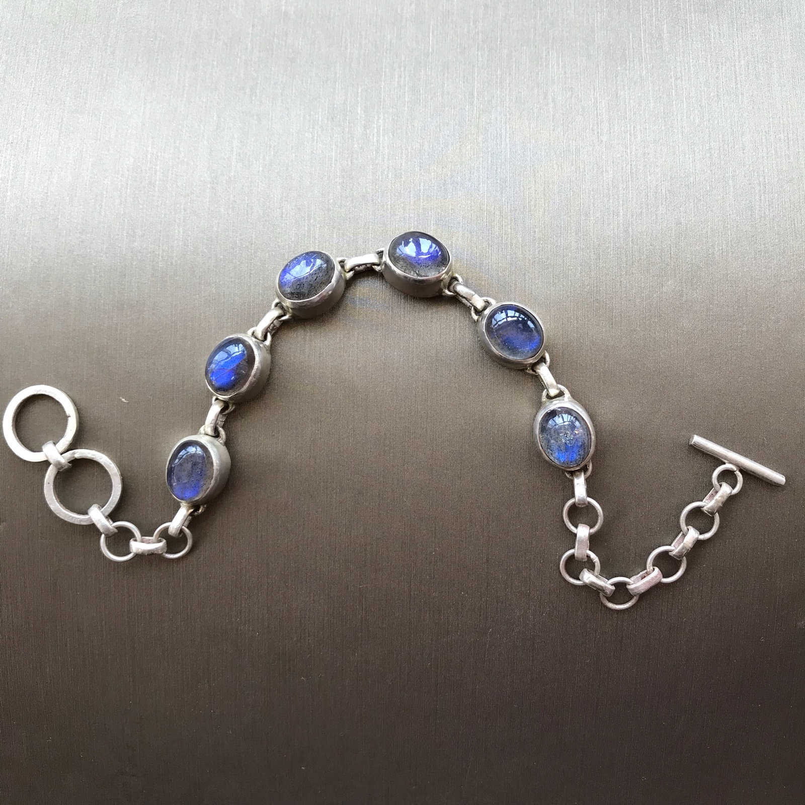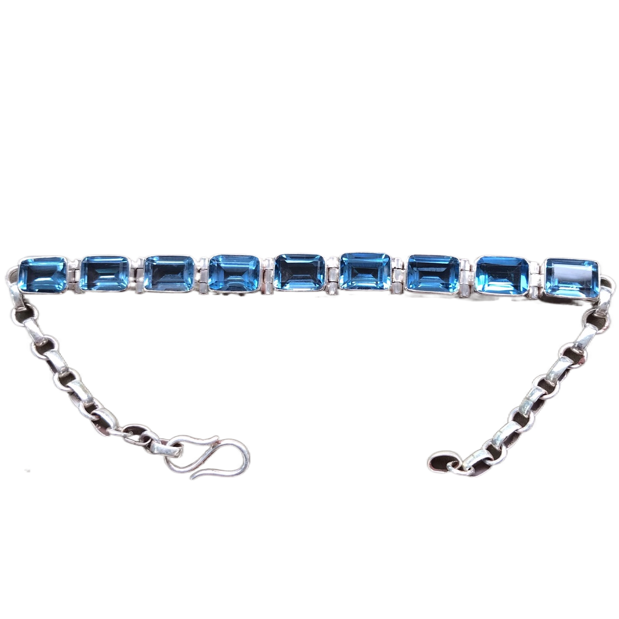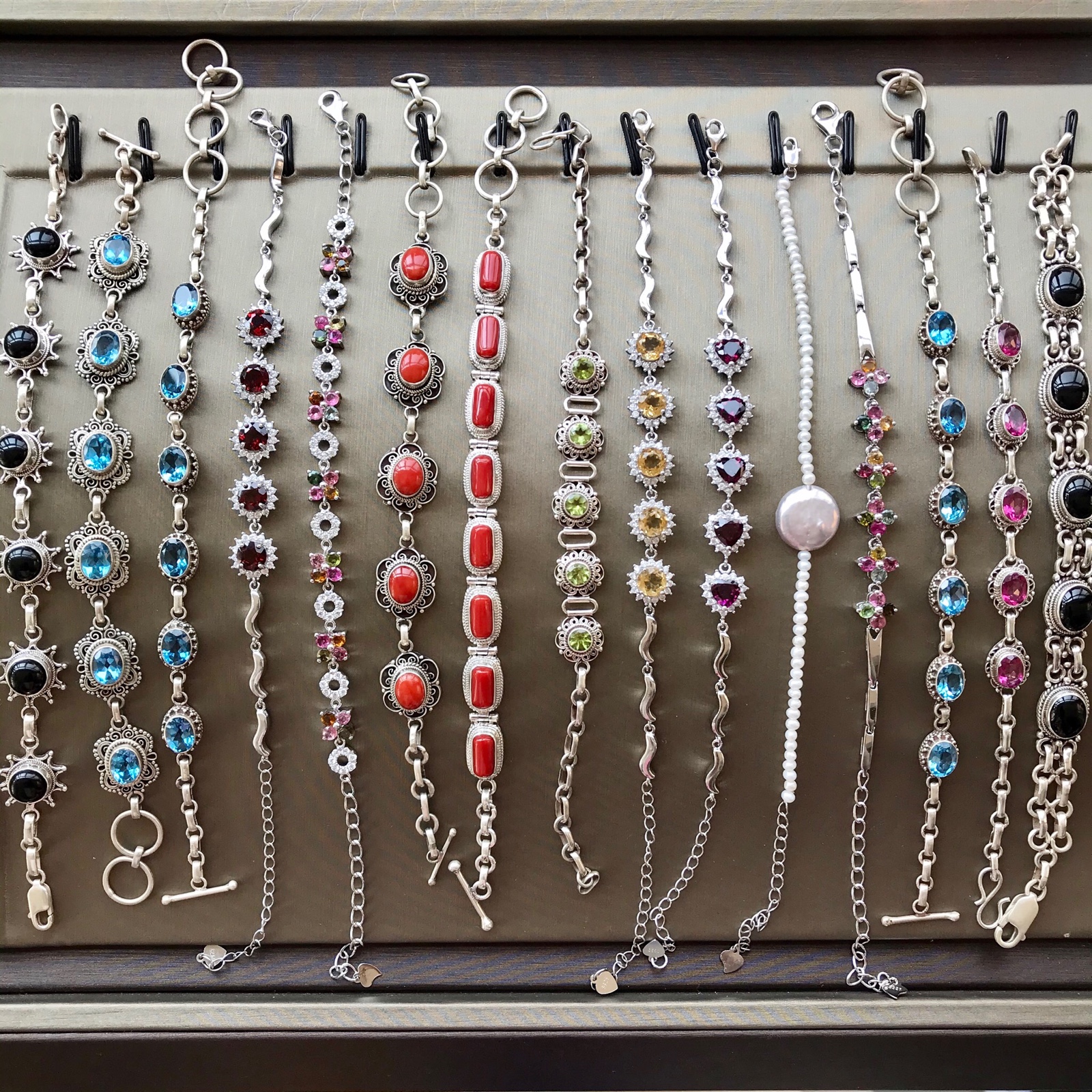 凉玥 尼泊尔手工拉丝碧玺蓝托帕石榴石绿松欧泊玛瑙925纯银手链