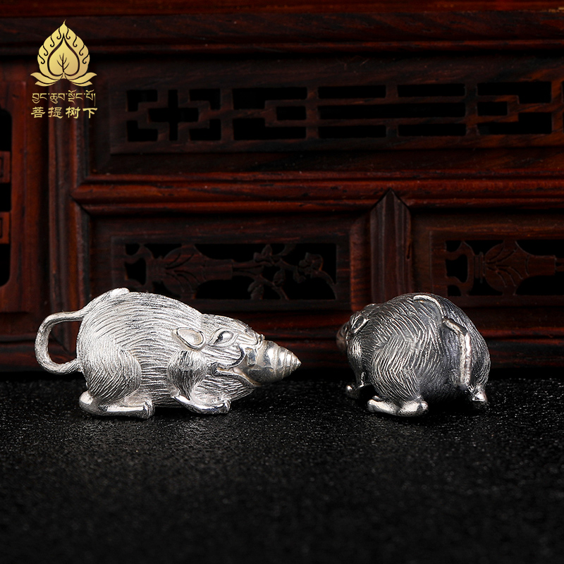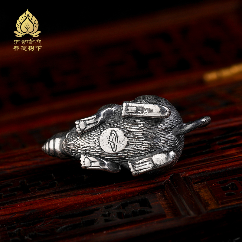 999纯银吐宝鼠神鼬吊坠男汽车挂件女钥匙坠招财本命年生肖鼠