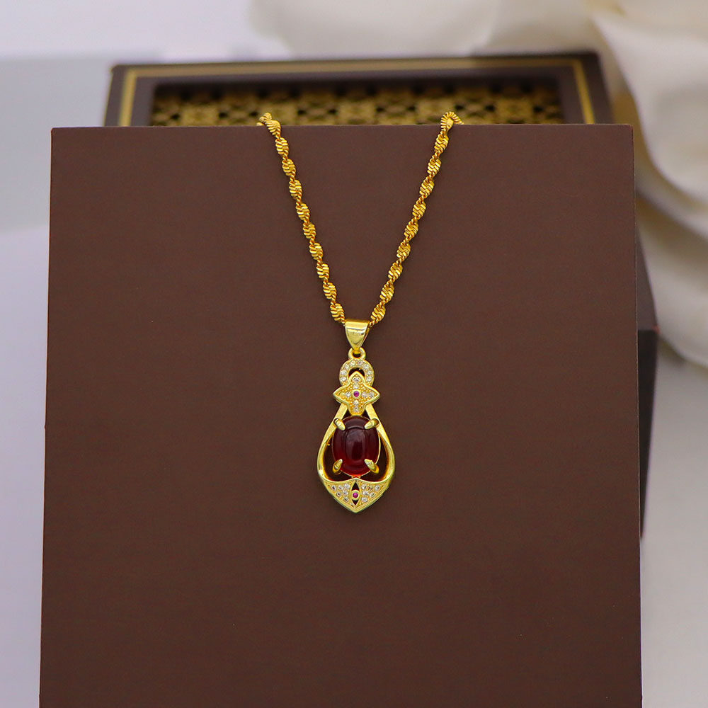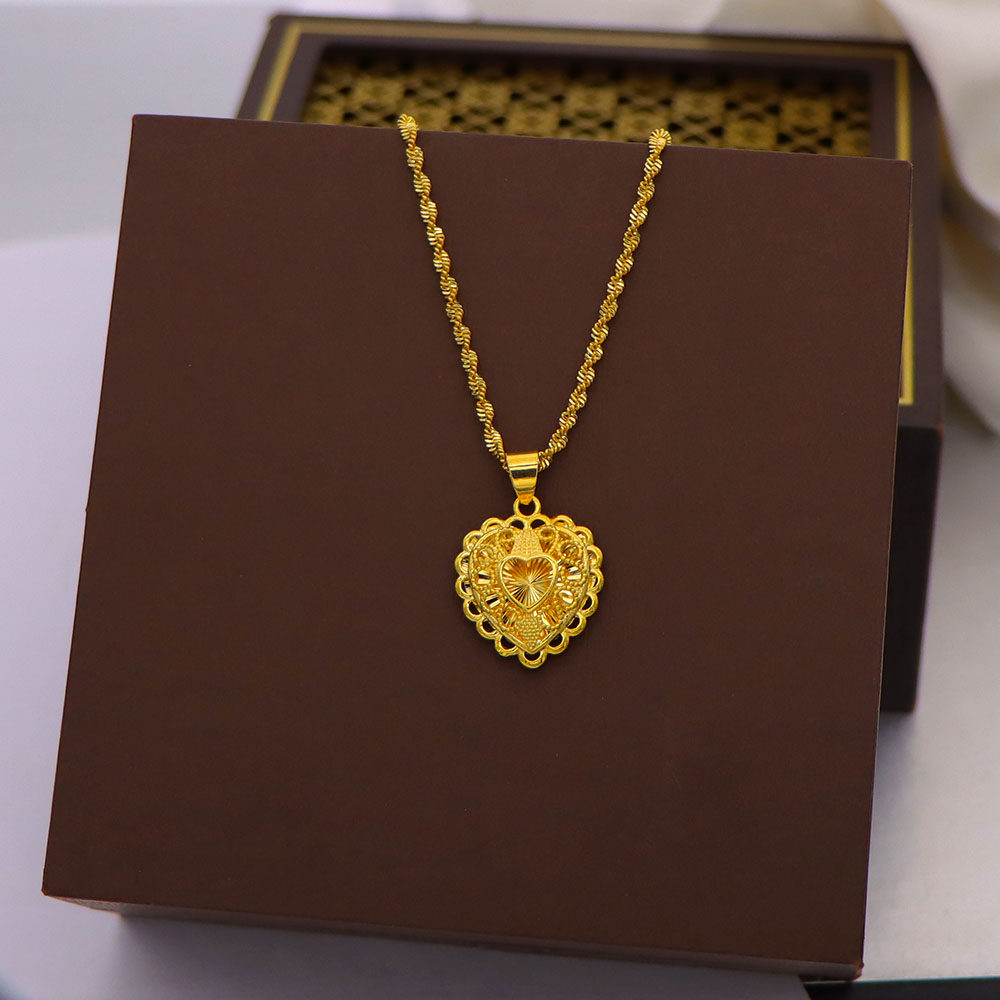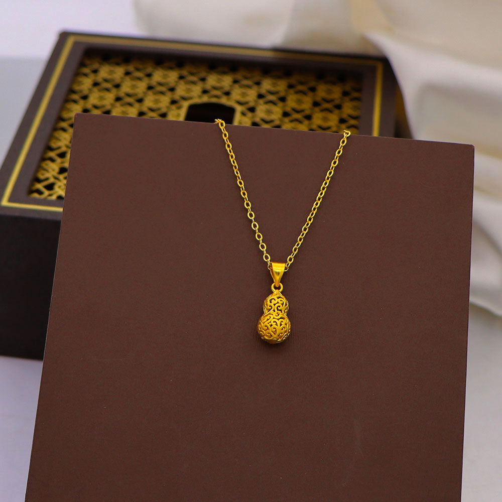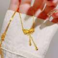 越南沙金项链女蝴蝶结吊坠99锁骨链小众颈链镀黄金色福字首饰