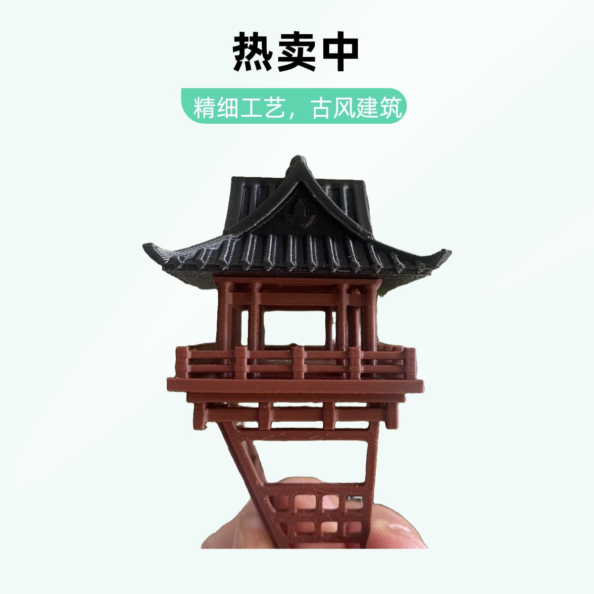 中式古建筑模型悬空亭景观假山鱼缸水陆庭院盆景摆件国风凉亭素材