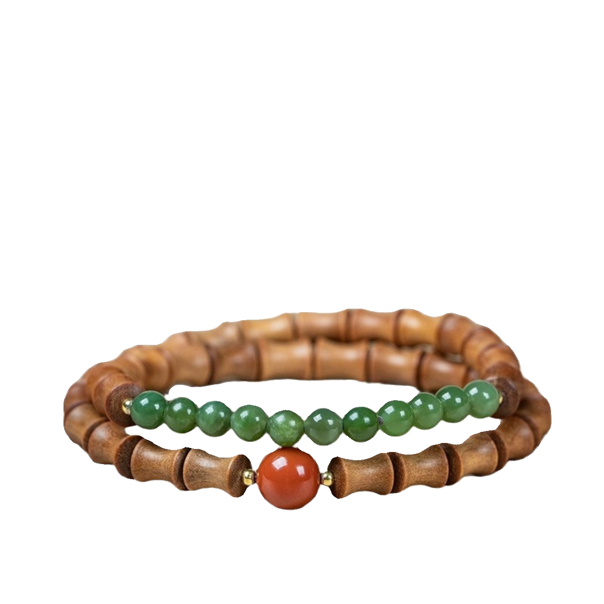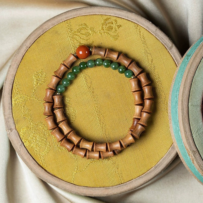 老山檀木手串上岸好运竹节檀香和田玉手链男女情侣款木质文玩学生