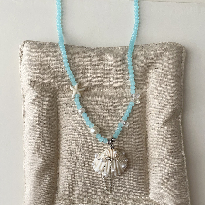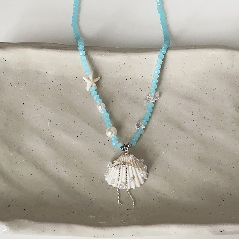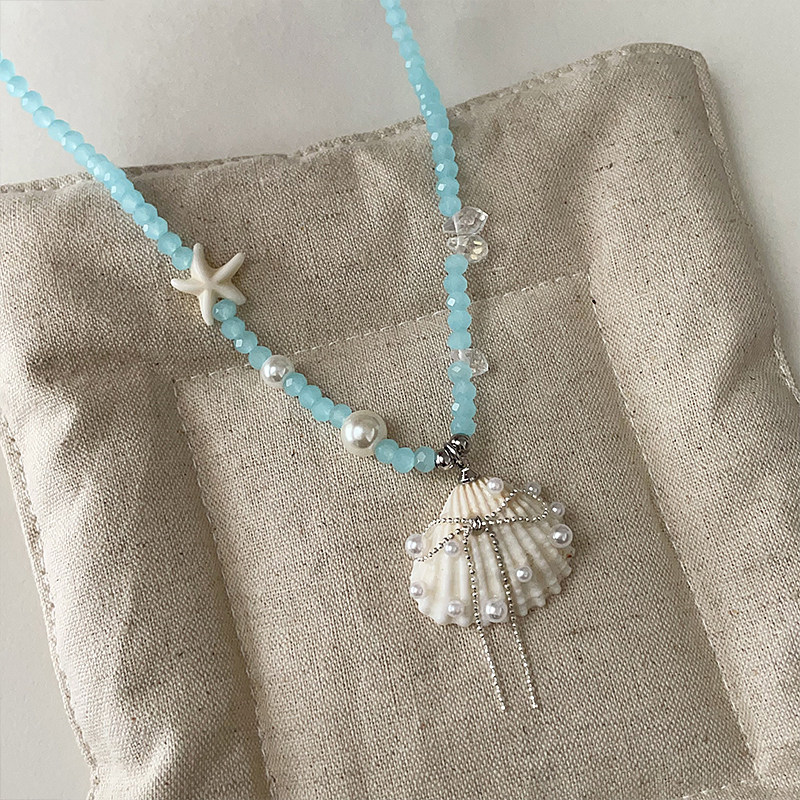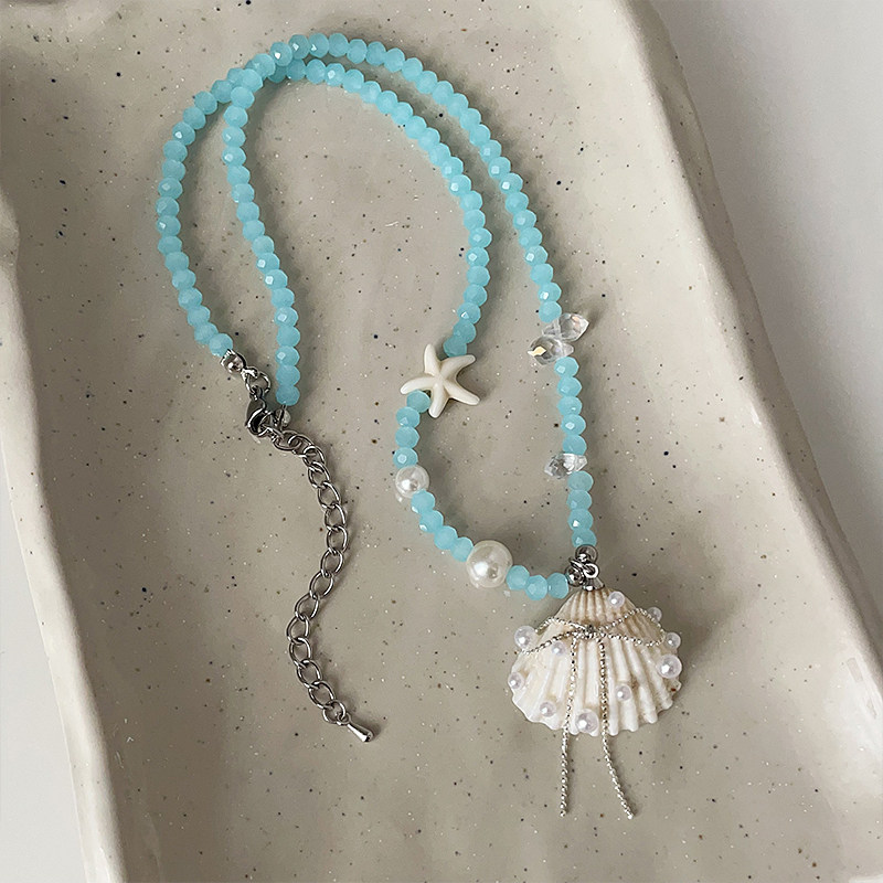 高级感海星贝壳蓝色水晶串珠项链甜美精致时尚潮流百搭颈链锁骨链