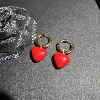 包邮黄铜新款红色滴油爱心耳环吊坠项链女轻奢风高级感百搭锁骨链