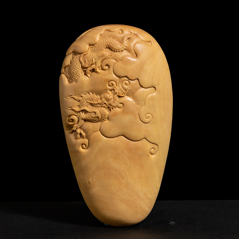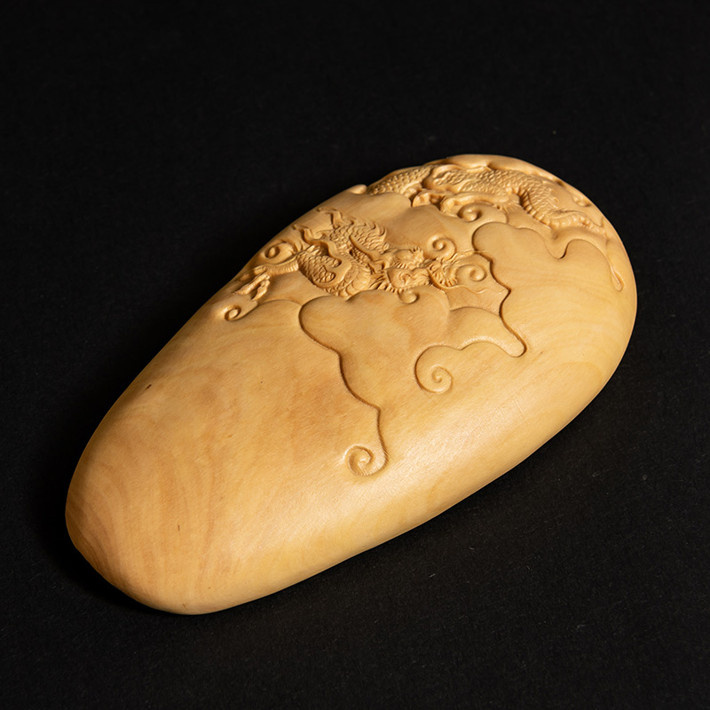 黄杨木中式文玩手把件单只茶勺实木茶铲创意手工艺品木雕龙啸茶则