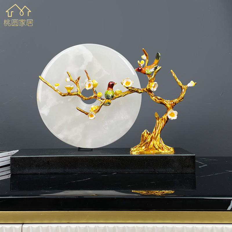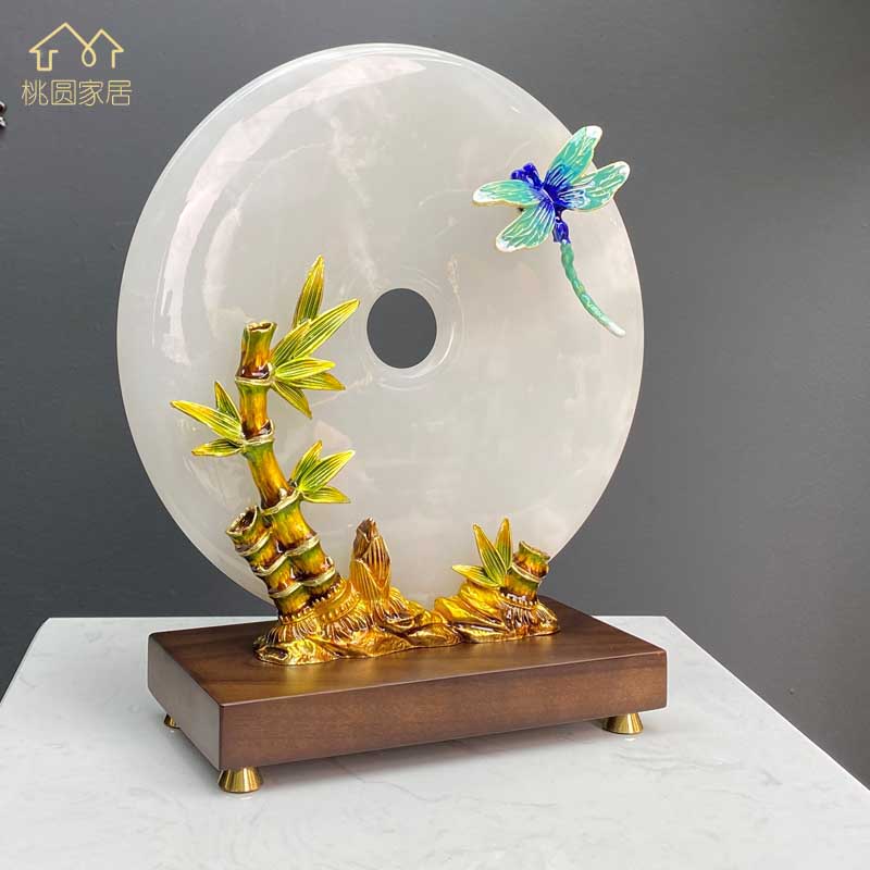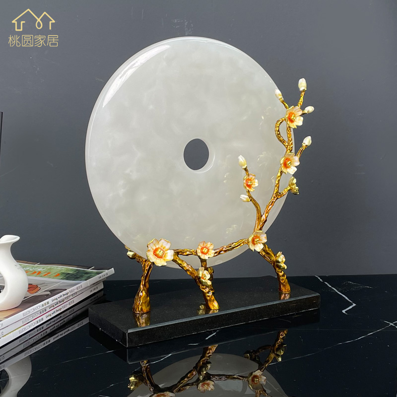 新中式平安扣摆件高端玉石禅意家居客厅书柜博古架办公室装饰品