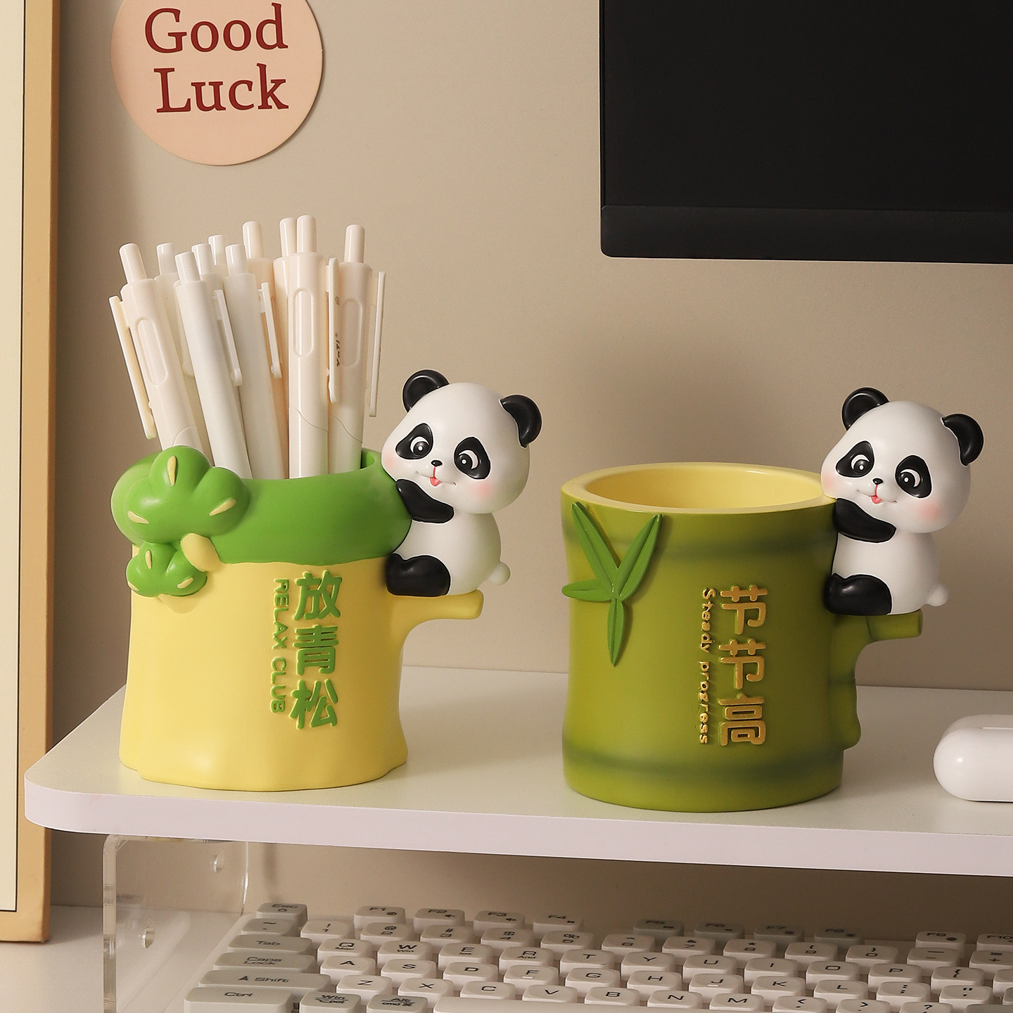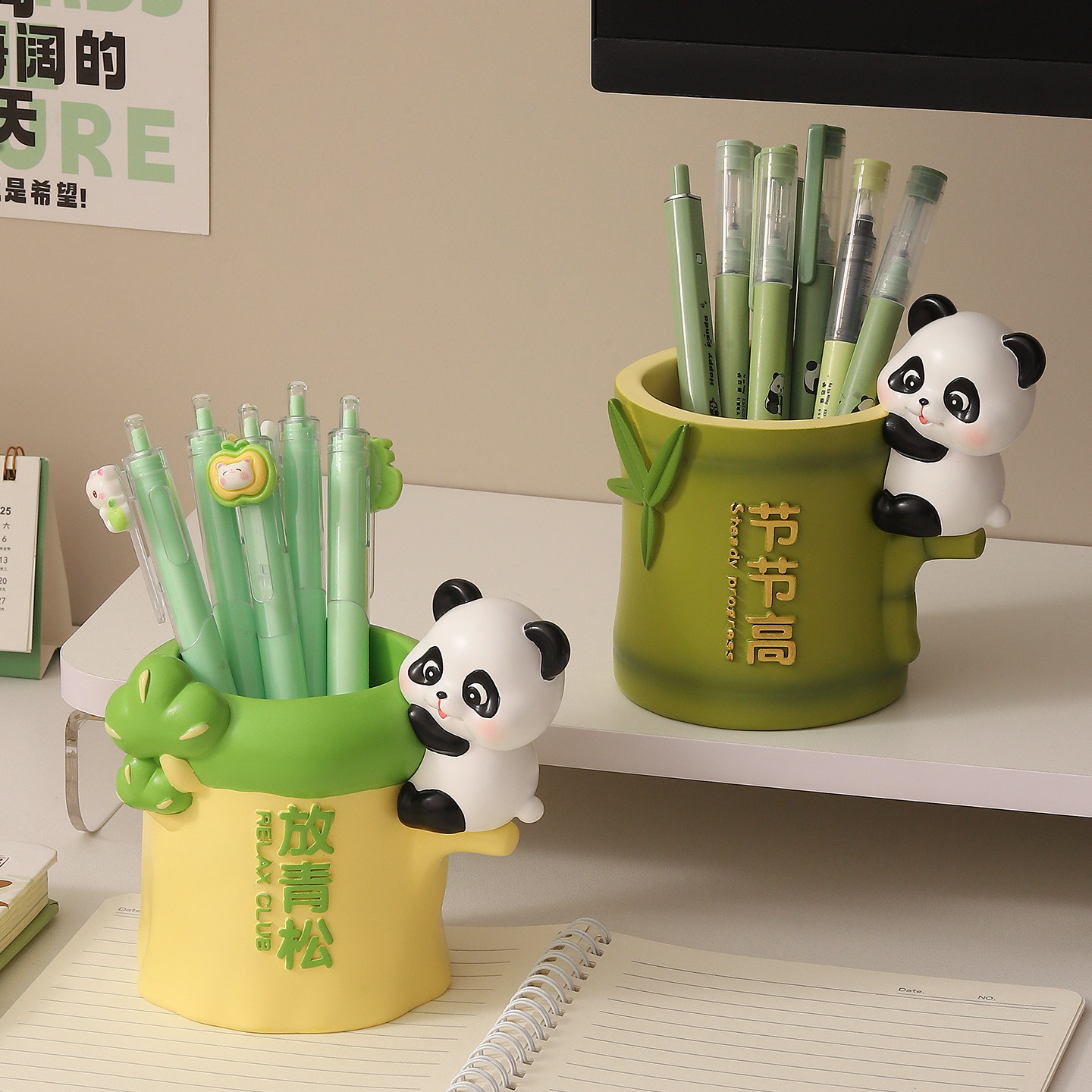 放青松熊猫文创笔筒办公室桌面好物解压工位情绪稳定神器生日礼物