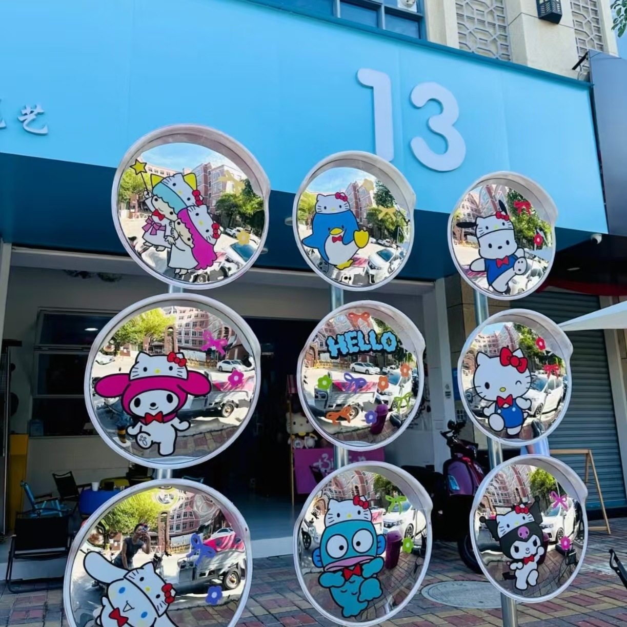 草地景区旅游九宫格童趣哈哈镜打卡装饰网婚礼装打卡饰凹凸镜道具