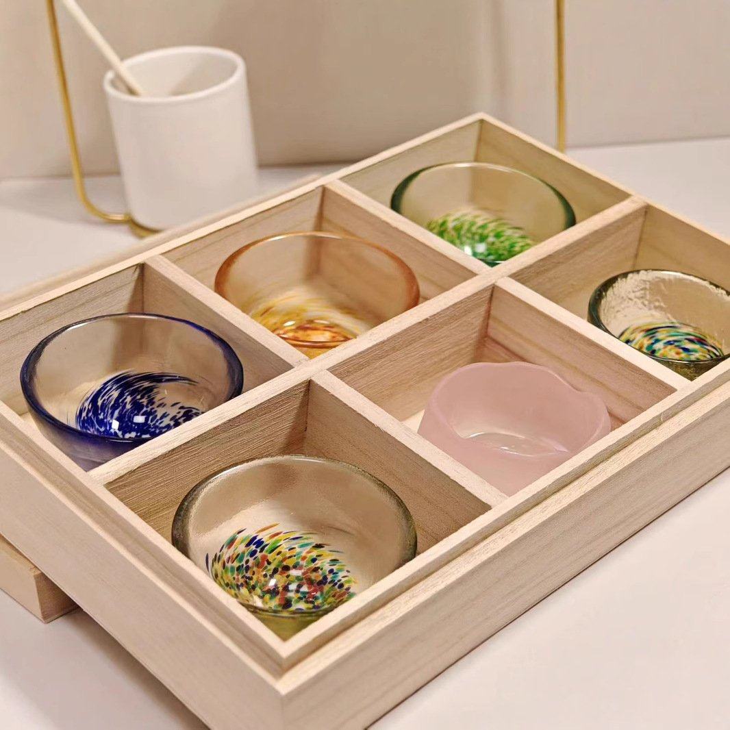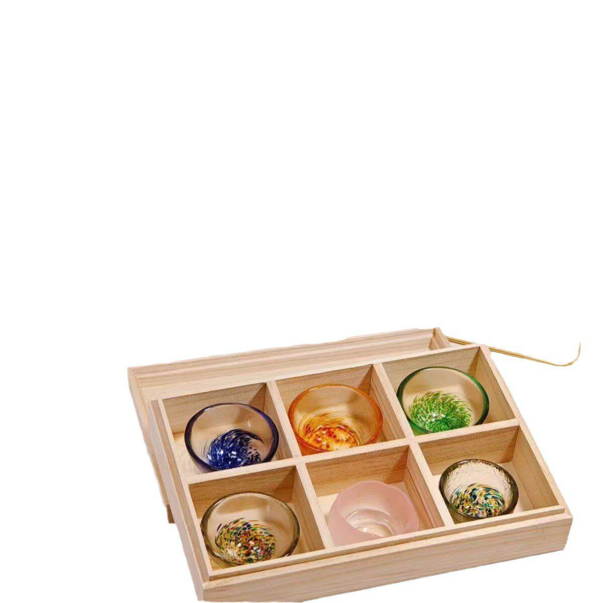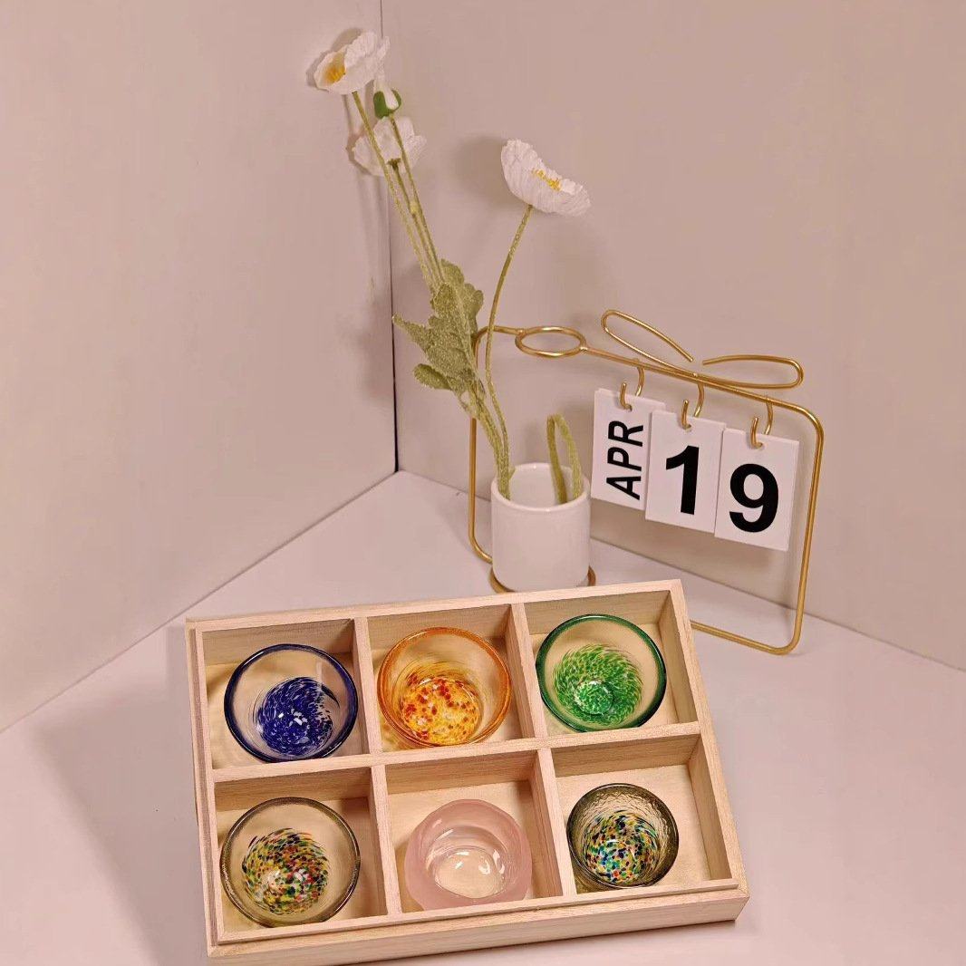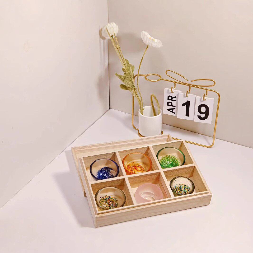 彩色琉璃杯九宫格日式小茶杯套装品茗杯个人玻璃杯清酒杯迷你酒杯