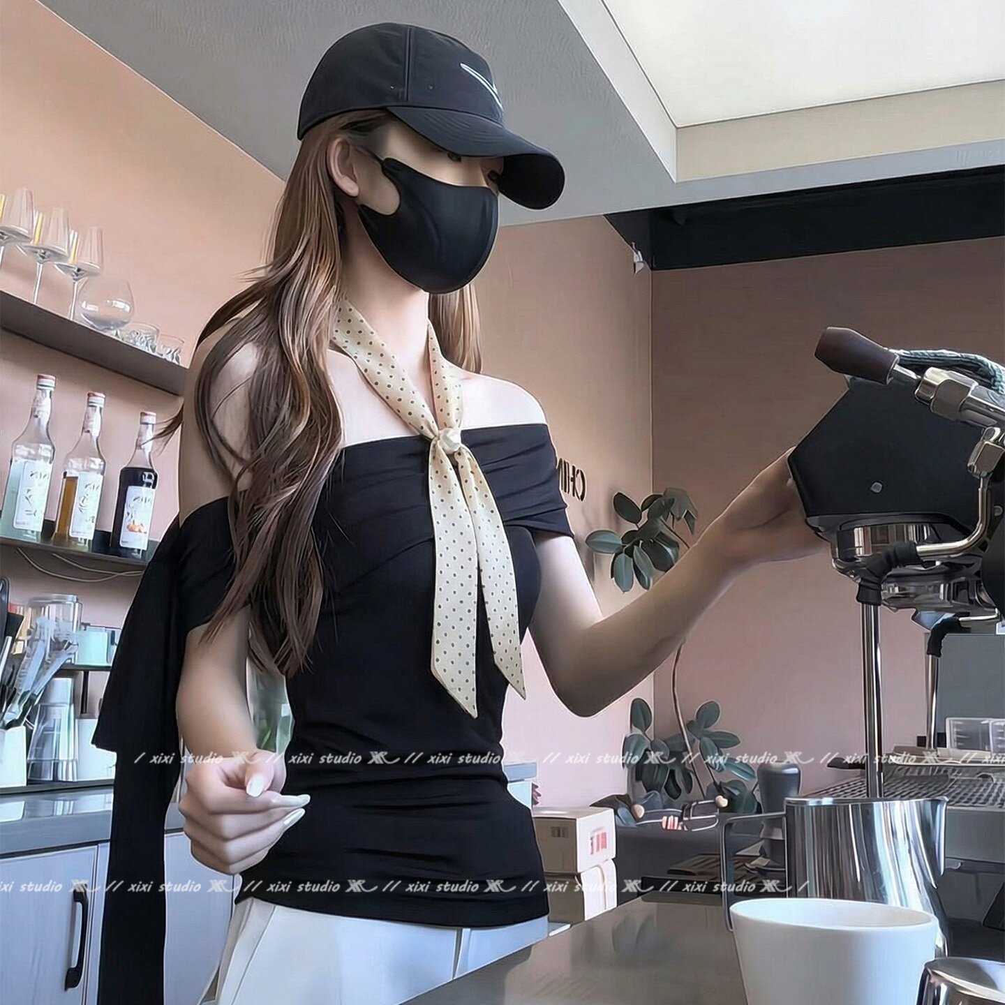 韩系白色波点串珠丝巾项链日常休闲百搭颈饰慵懒感穿搭配饰新品女