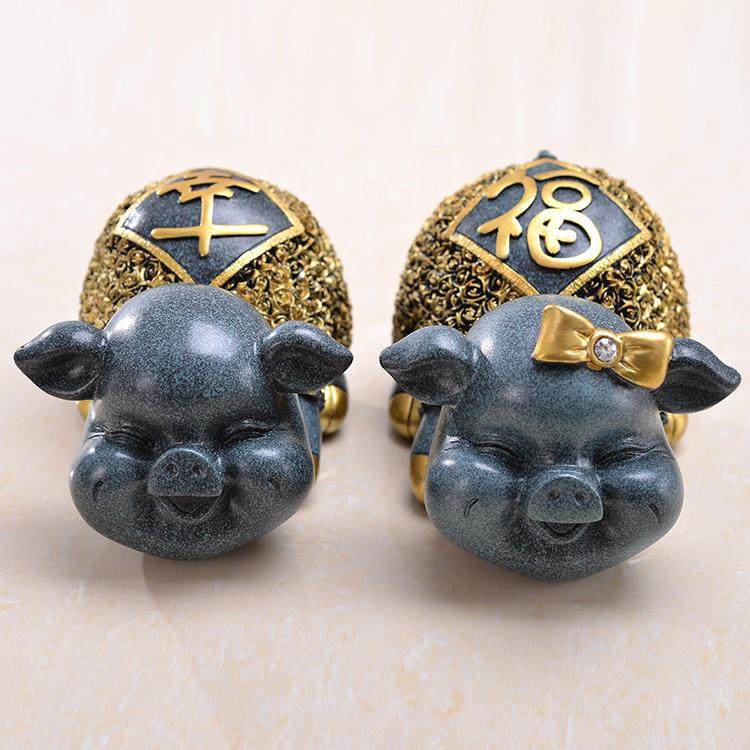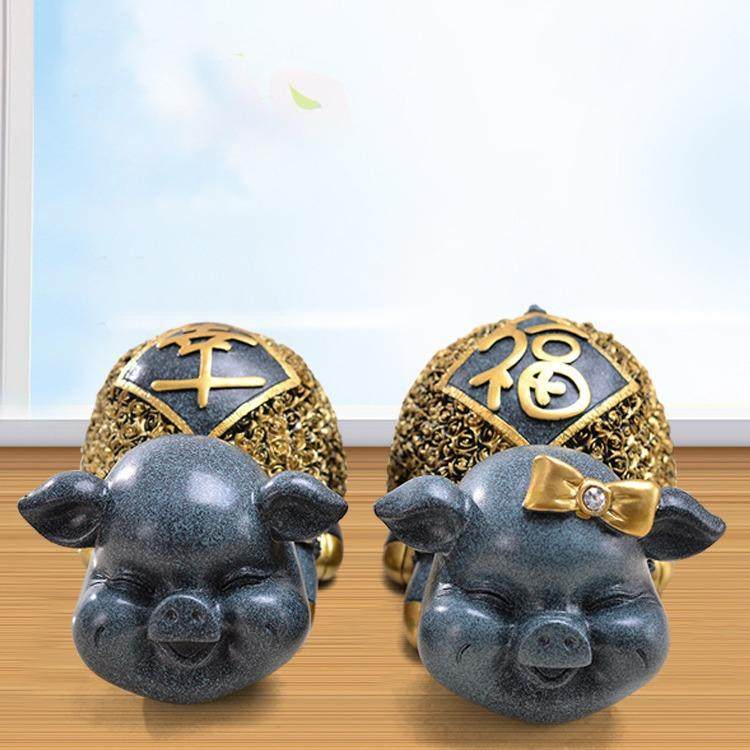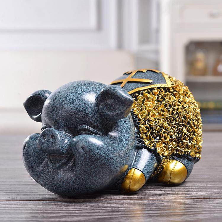 树脂工艺品欧式蓝色中号幸福猪摆件创意客厅电视柜家居装饰品