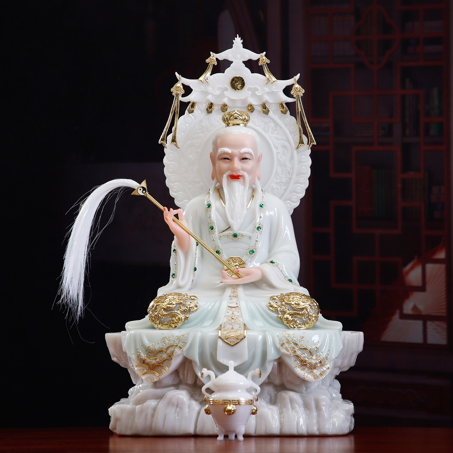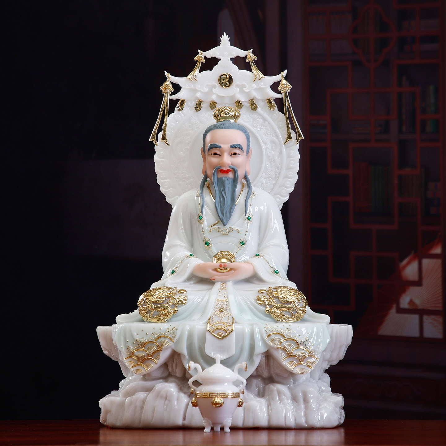 汉白玉三清祖师神像家用供奉太上老君神像道德元始灵宝天尊像摆件