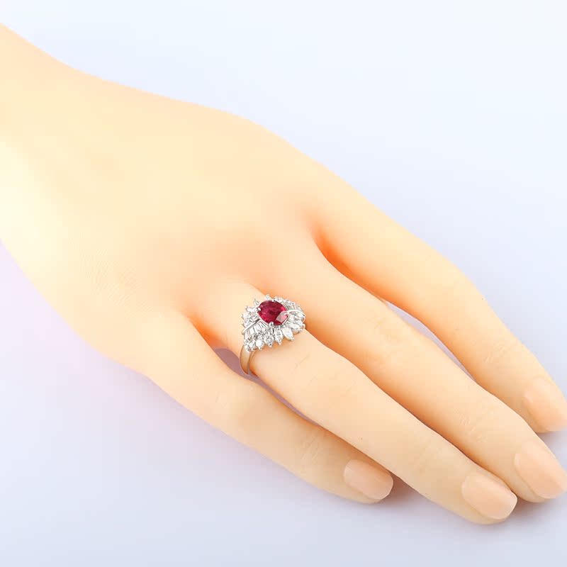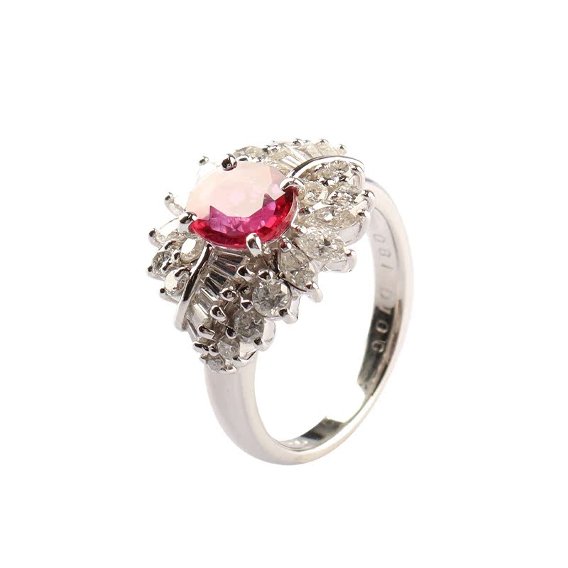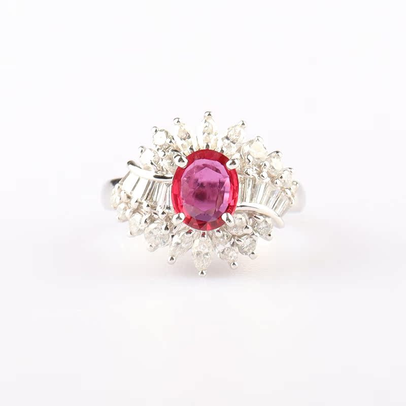 【自营】中古95新日本进口商品椭圆形切工红宝石钻石铂金49号戒指