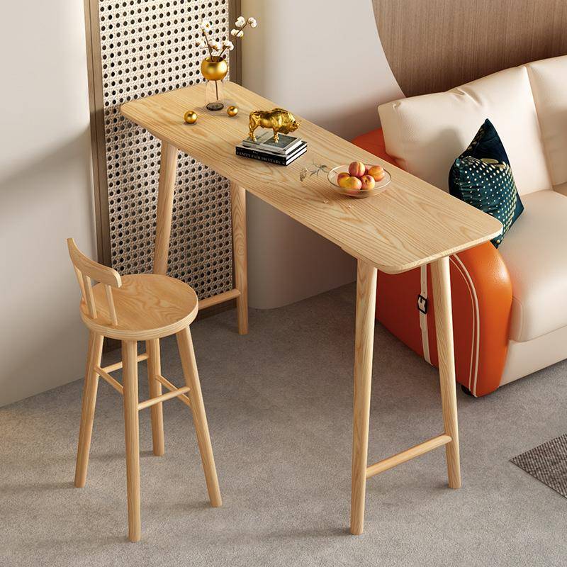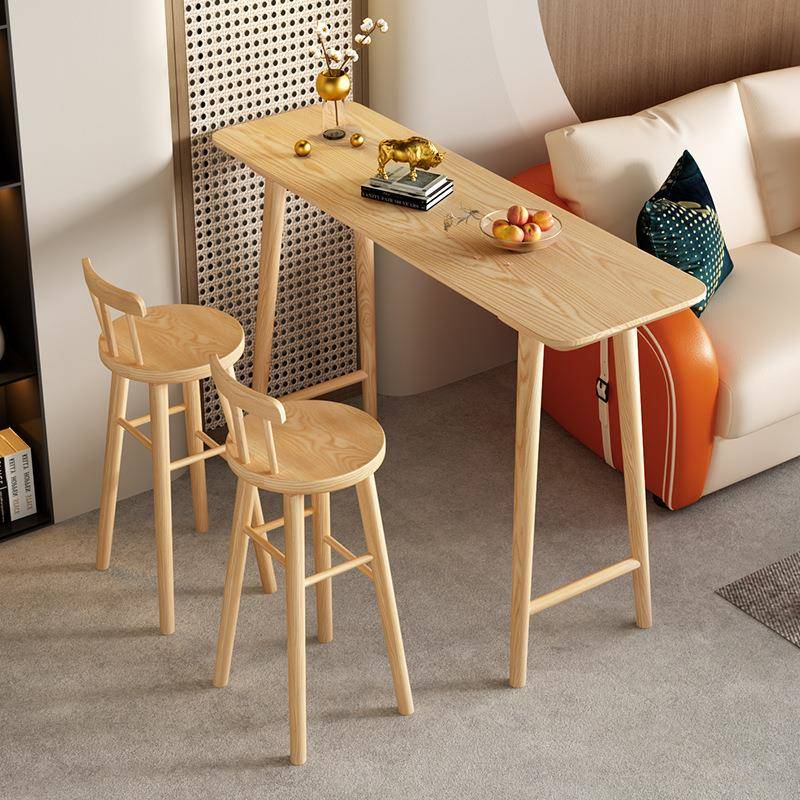 北欧实木吧台桌家用客厅简约现代创意小户型靠墙长条桌子高脚桌椅