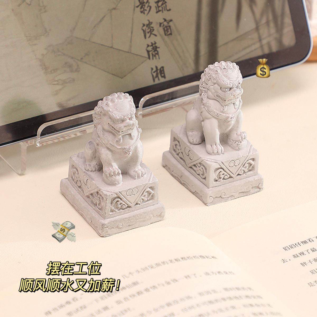 门口镇宅石狮子小摆件一对看门情绪稳定办公室桌面迷你好物装饰品
