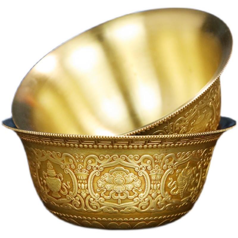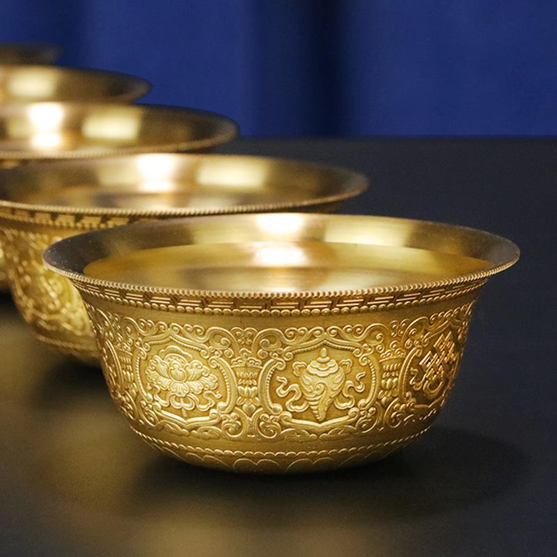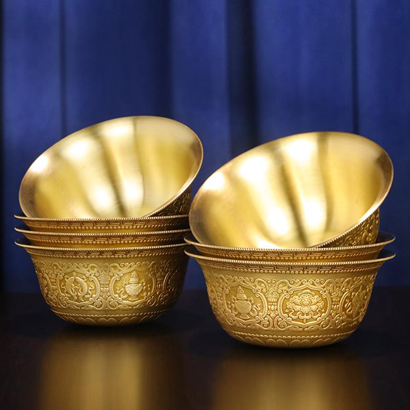 慧宝黄铜供水碗藏式八吉祥金色佛前八供碗小号供佛圣水茶酒杯摆件