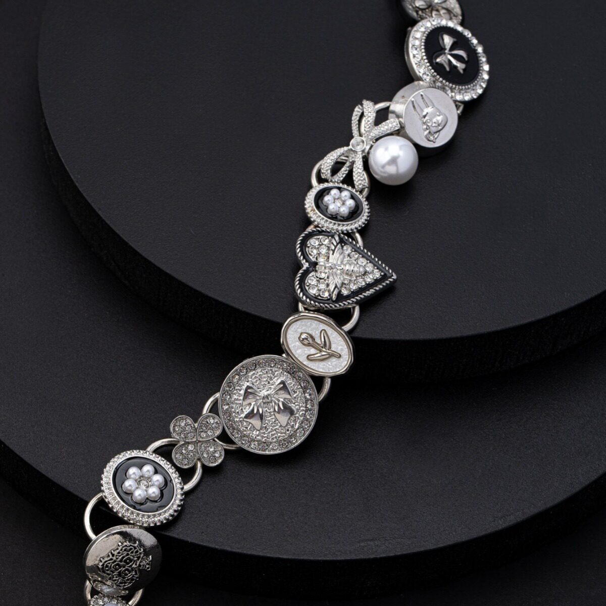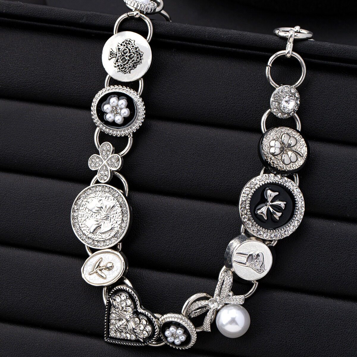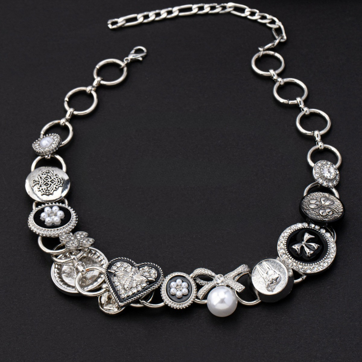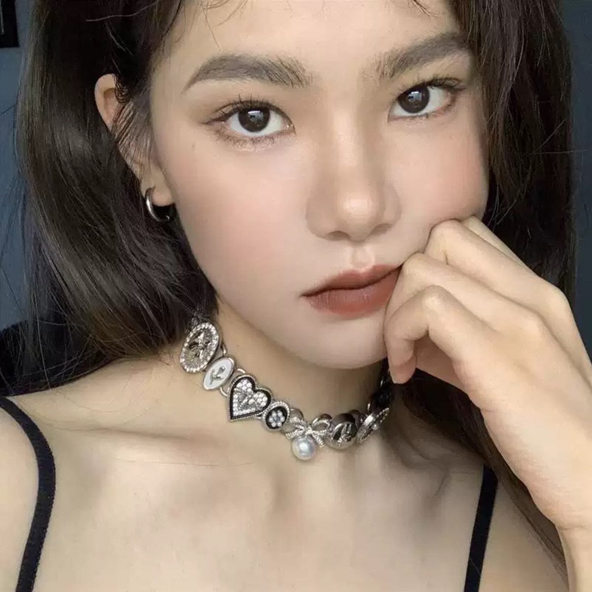 y2k辣妹项链黑白色纽扣项链复古镶钻爱心项链朋克choker锁骨颈链