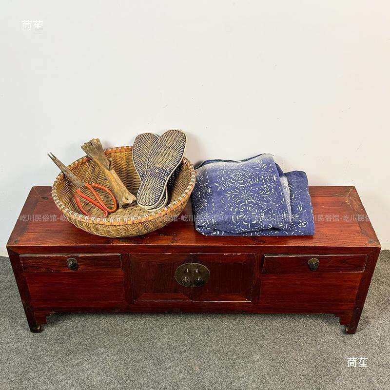 民俗老物件榆木炕柜收纳柜炕桌针线用品农村传统收藏纪念品摆件