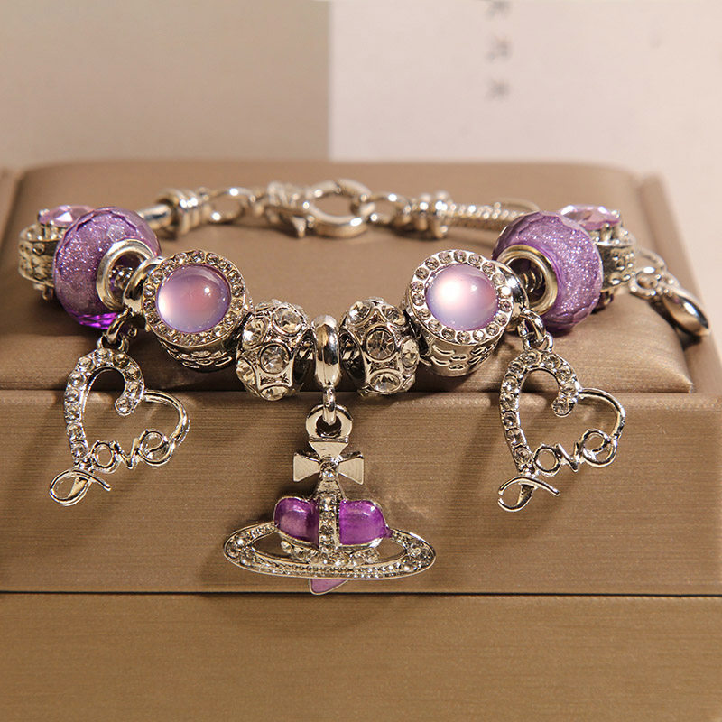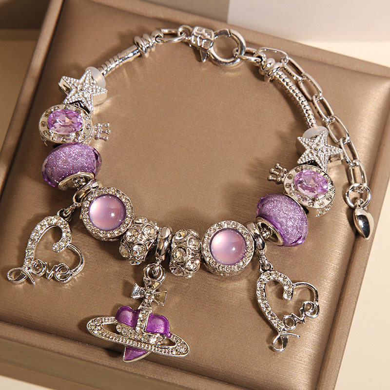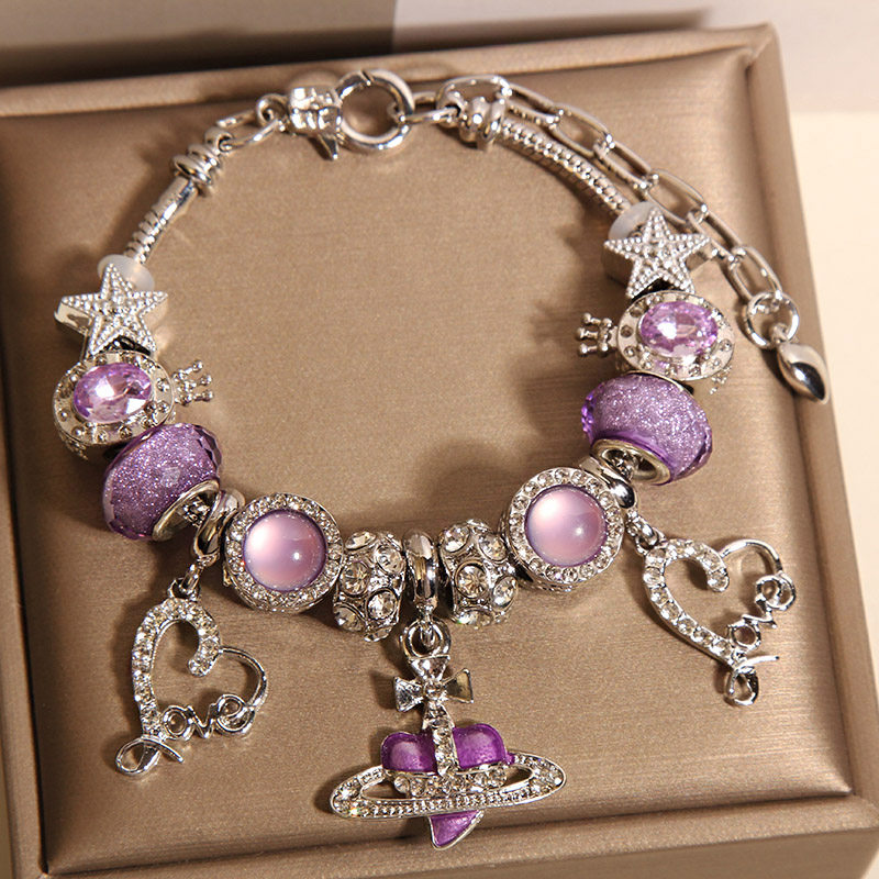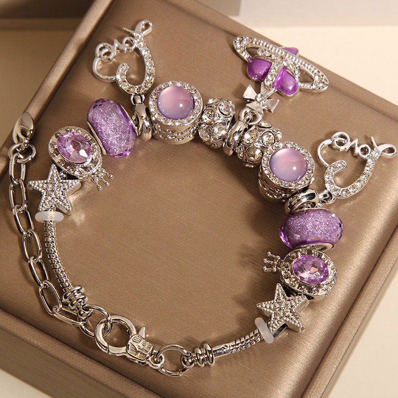 新中式紫色琉璃珠手链女轻奢小众高级感气质百搭爱心星星手串手环