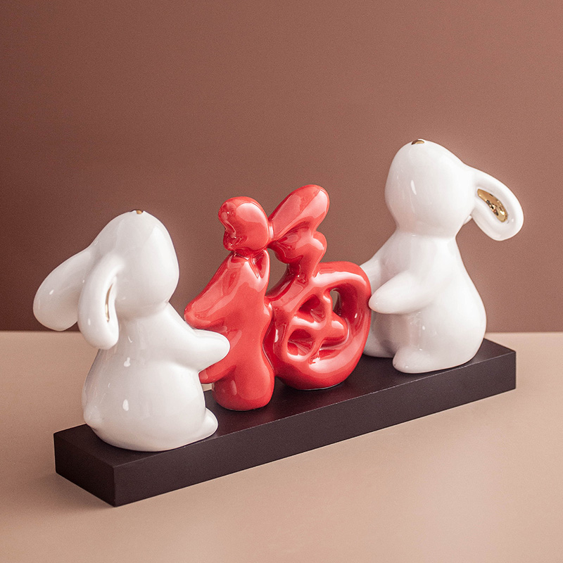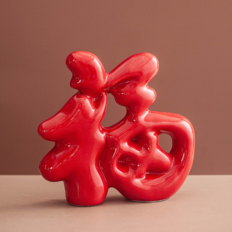 创意喜庆福字摆件客厅桌面入户玄关电视柜前台红色喜庆乔迁装饰品