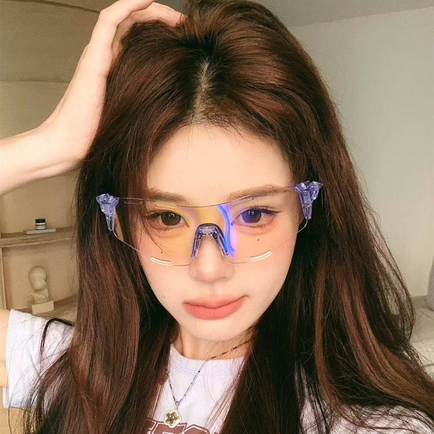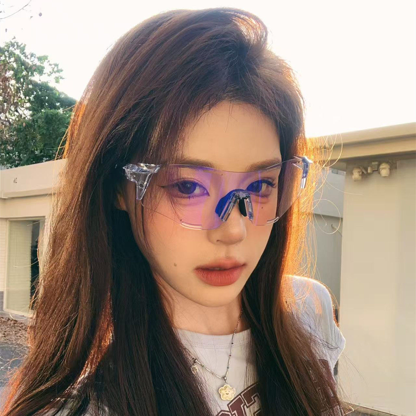 新款未来感透明蓝色镜框太阳镜女防紫外线骑行护目镜男女变色眼镜