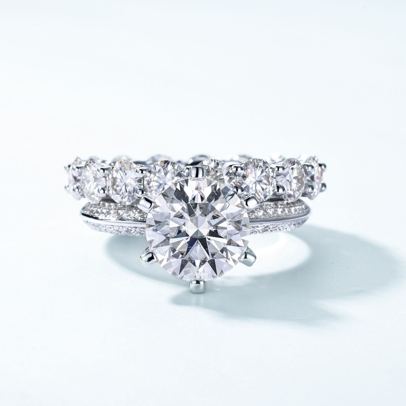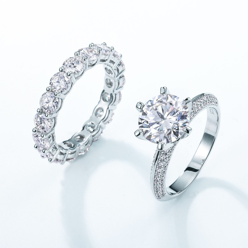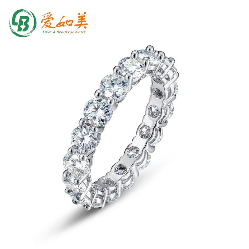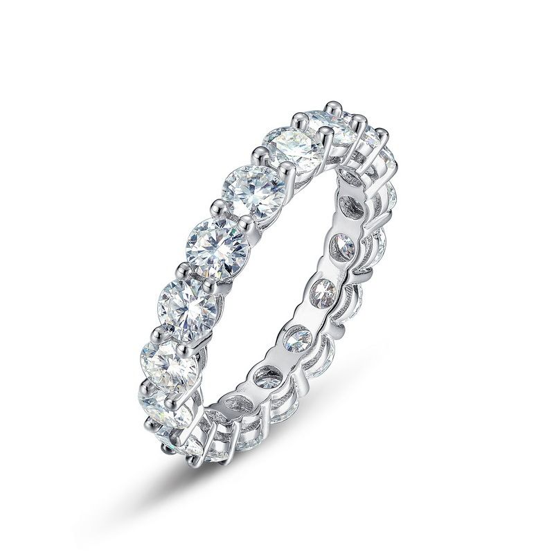 欧美新款简约百搭单排满钻指环S925纯银镶莫桑钻戒指女设计感手饰