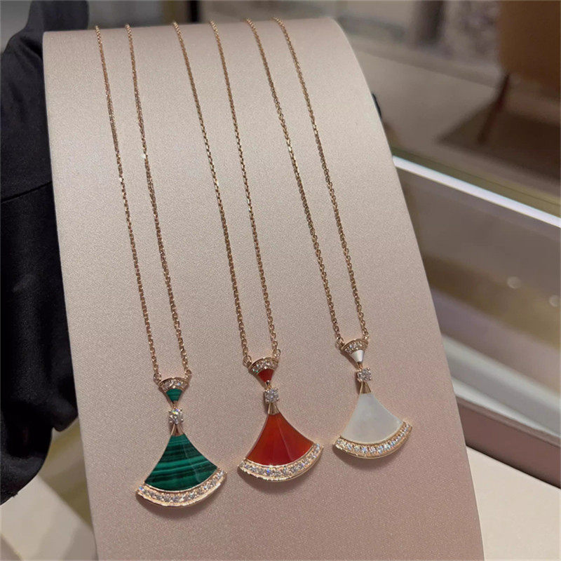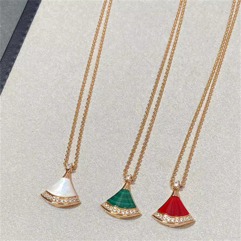 轻奢18K玫瑰金项链女扇形小裙子百搭高级女贝母时尚锁骨链送女友