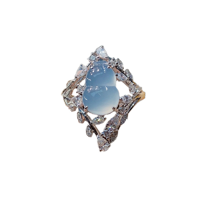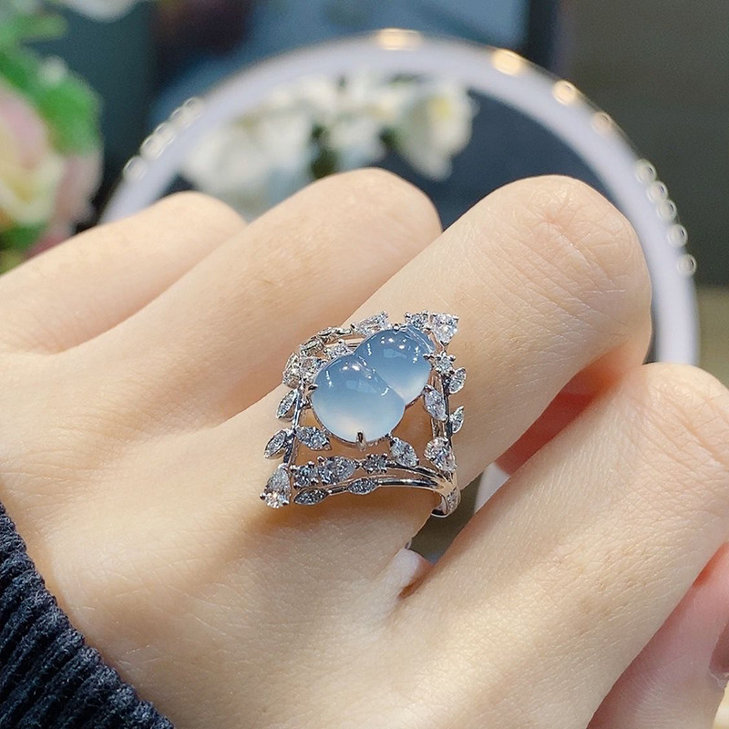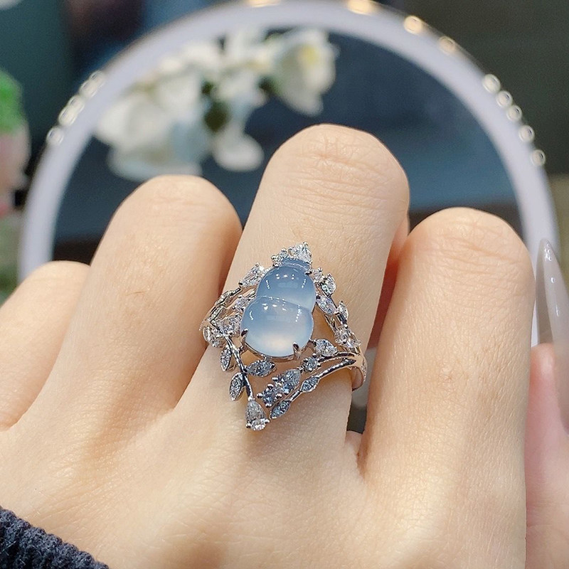 镀S925银镶钻高冰胶蓝底葫芦戒指女高端宫廷风小众设计开口指环