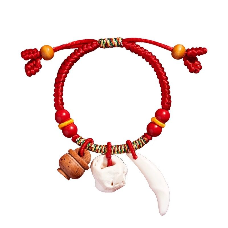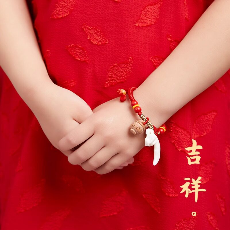 宝宝婴儿红绳手链女猪精骨桃木护身符手绳猪惊骨狗牙朱砂桃篮挂件