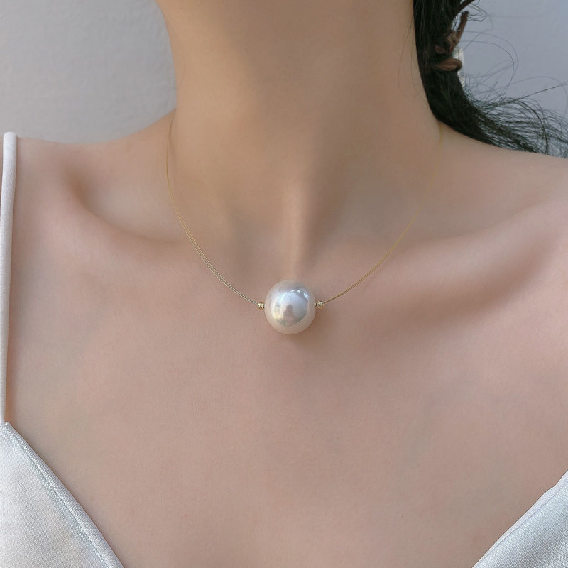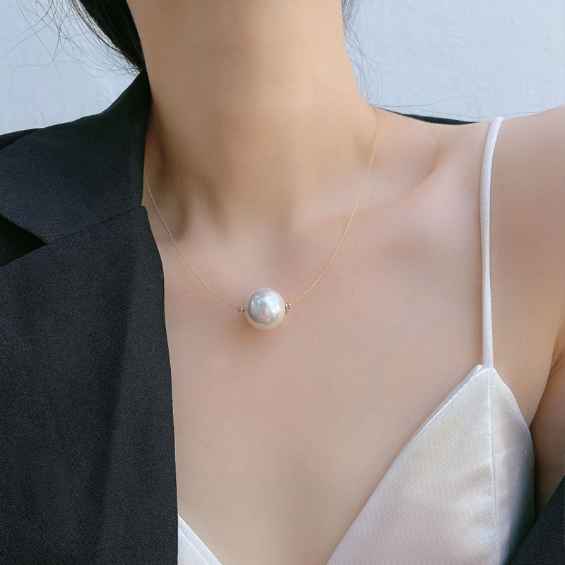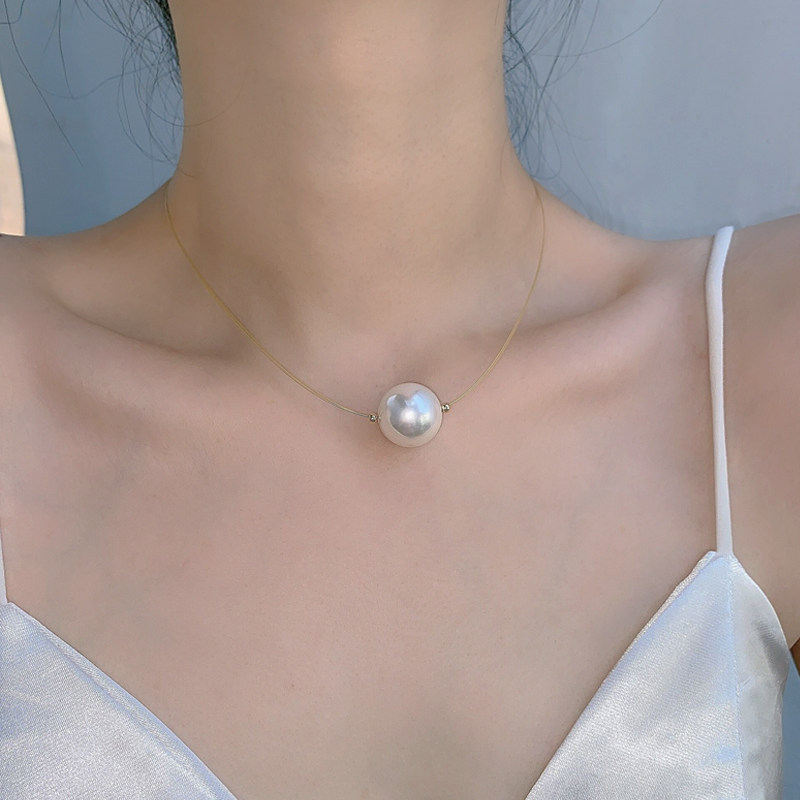 高质感珍珠细鱼线单颗吊坠高光简约转运珠锁骨链时尚颈链女配饰