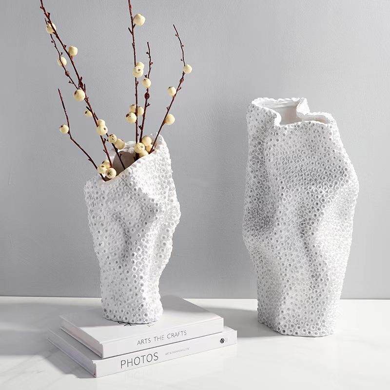 简创约现代客树脂白色0022多孔花器摆件样板房家居厅摆意花瓶装饰