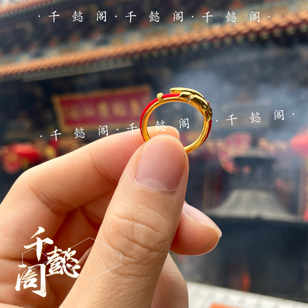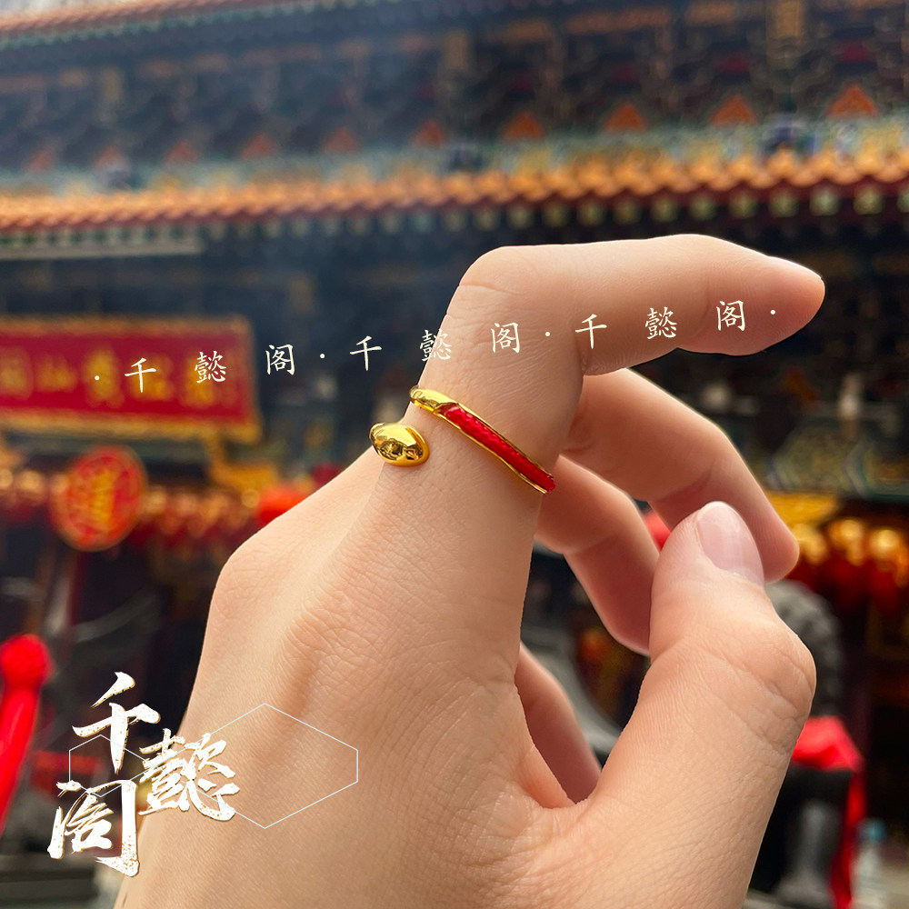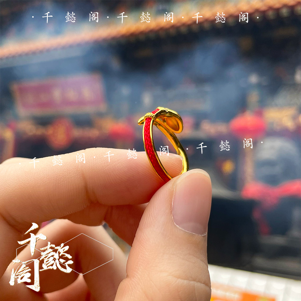 香港黄大仙红绳金戒女开口戒指细版幸运平安招财复古招财小众姻缘