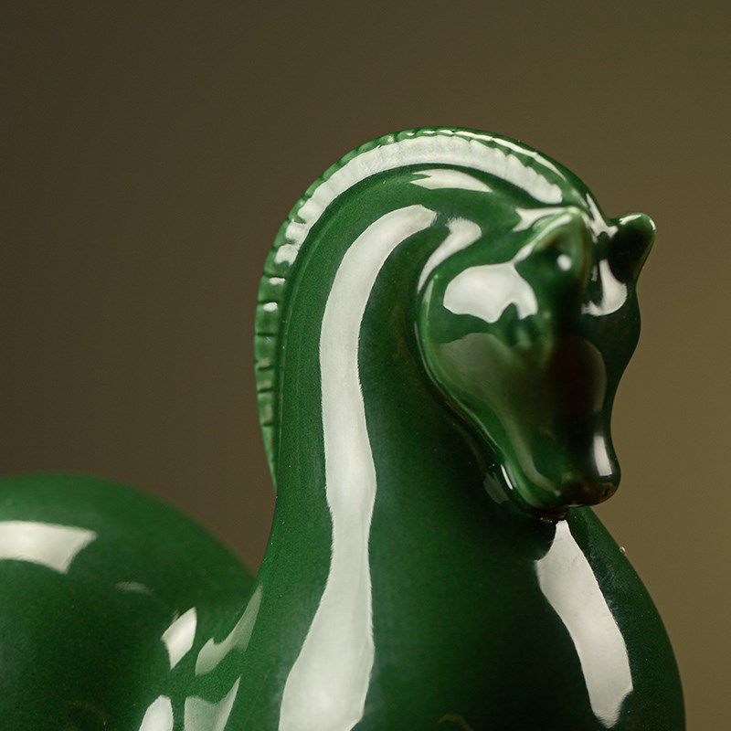 久造 陶瓷绿马小摆件 家居客厅书房书桌办公室桌面装饰品可爱唐马