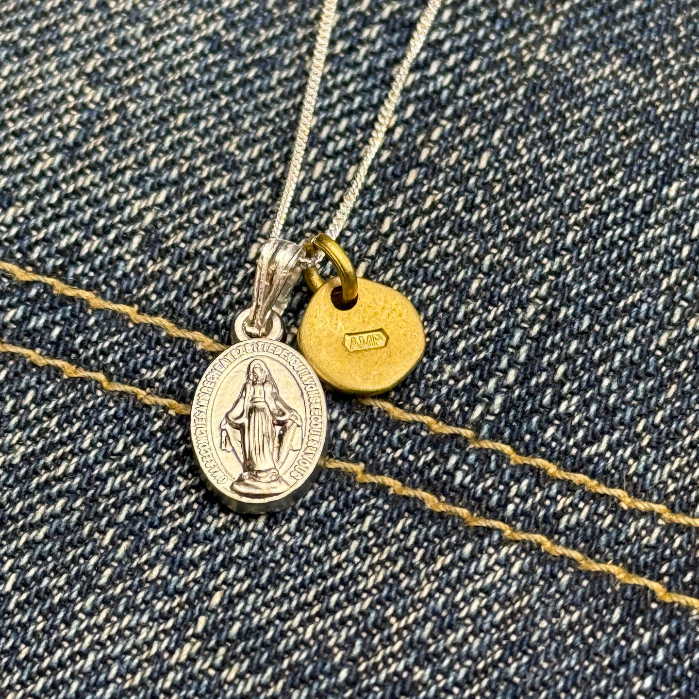 AMP Japan 日本手作3D浮雕925银人像铜牌925银链套装项链