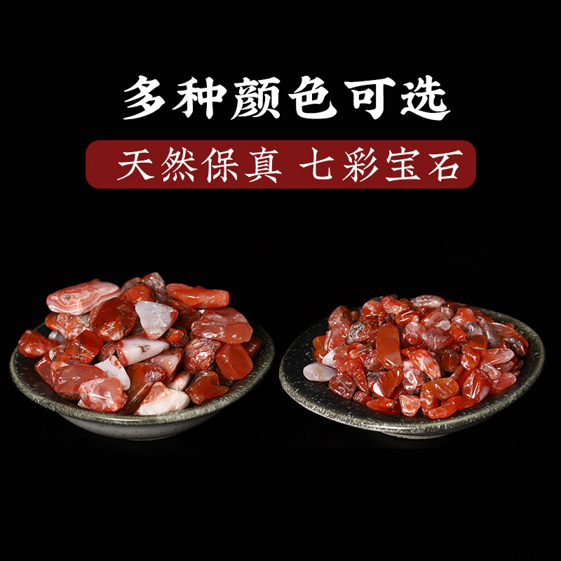七彩宝石粉黄紫白色天然水晶碎石大小红蓝黑新房装修洒净鱼缸底石