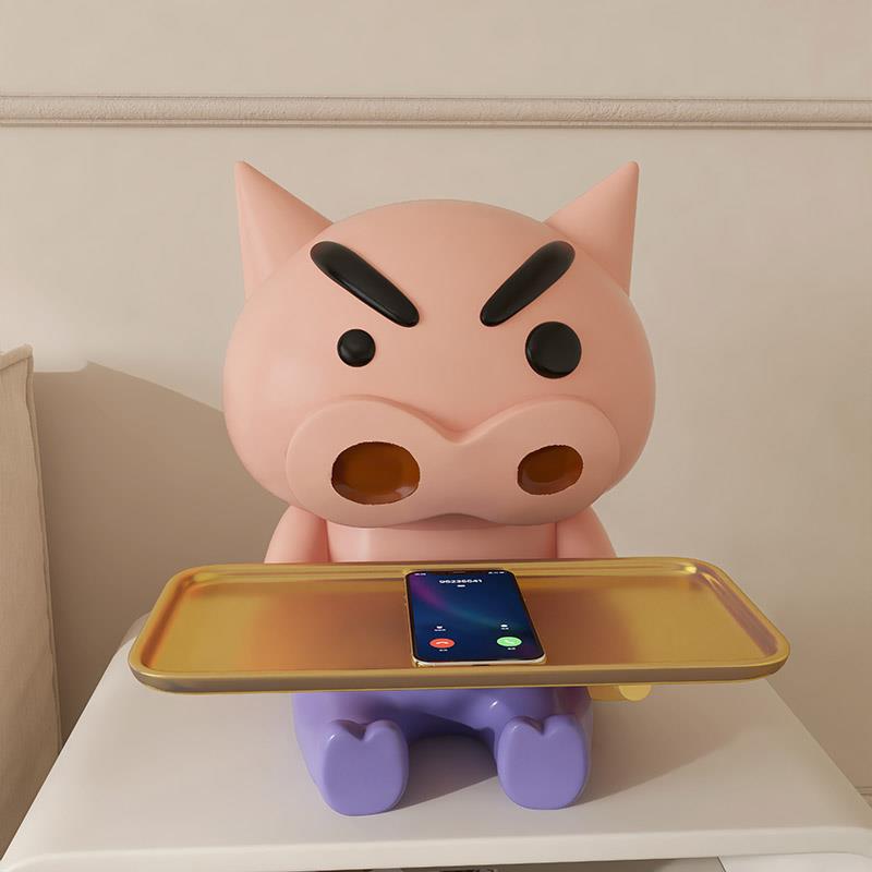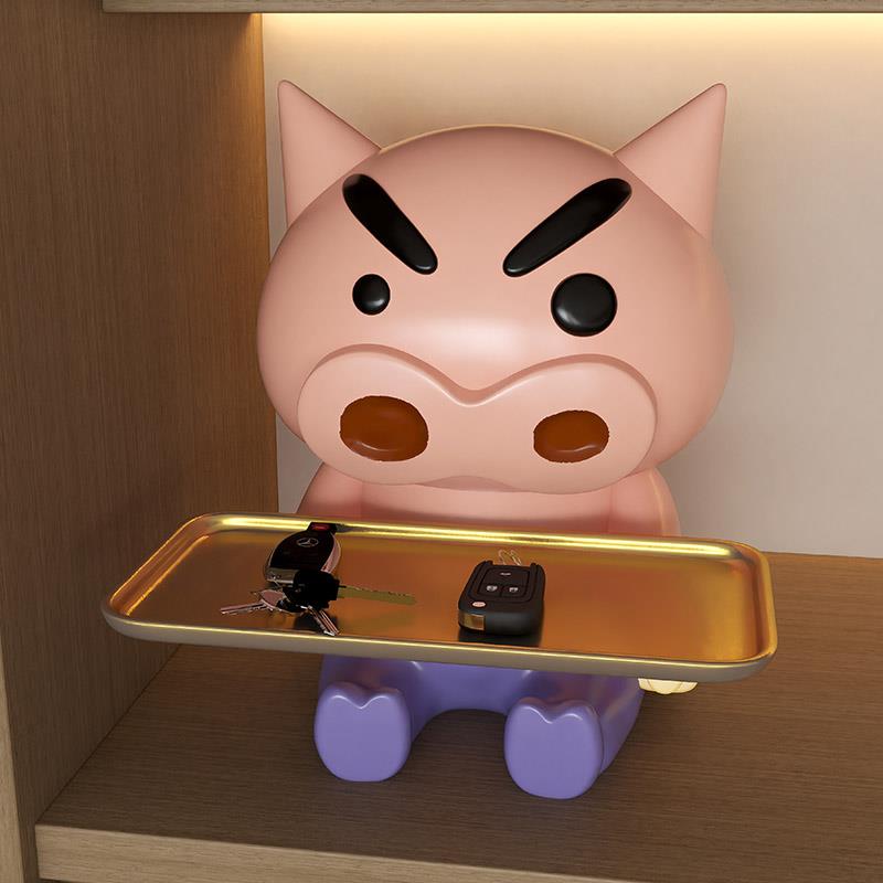 蜡笔小新肥嘟嘟左卫门客厅玄关入户门放钥匙收纳托盘软装饰品摆件