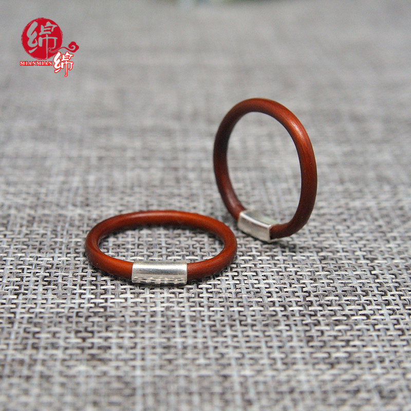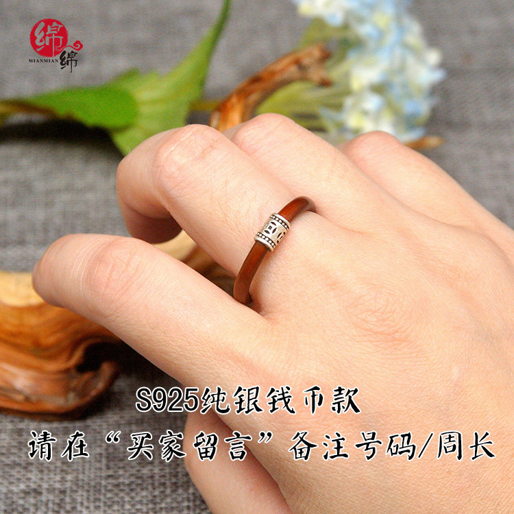 野生西藏无节鸡血藤纯银戒指方圆面情侣对戒尾戒银戒民族风本命年