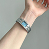Vintage古着蓝色手镯式手表小众轻奢设计感机械表时尚潮流女款表