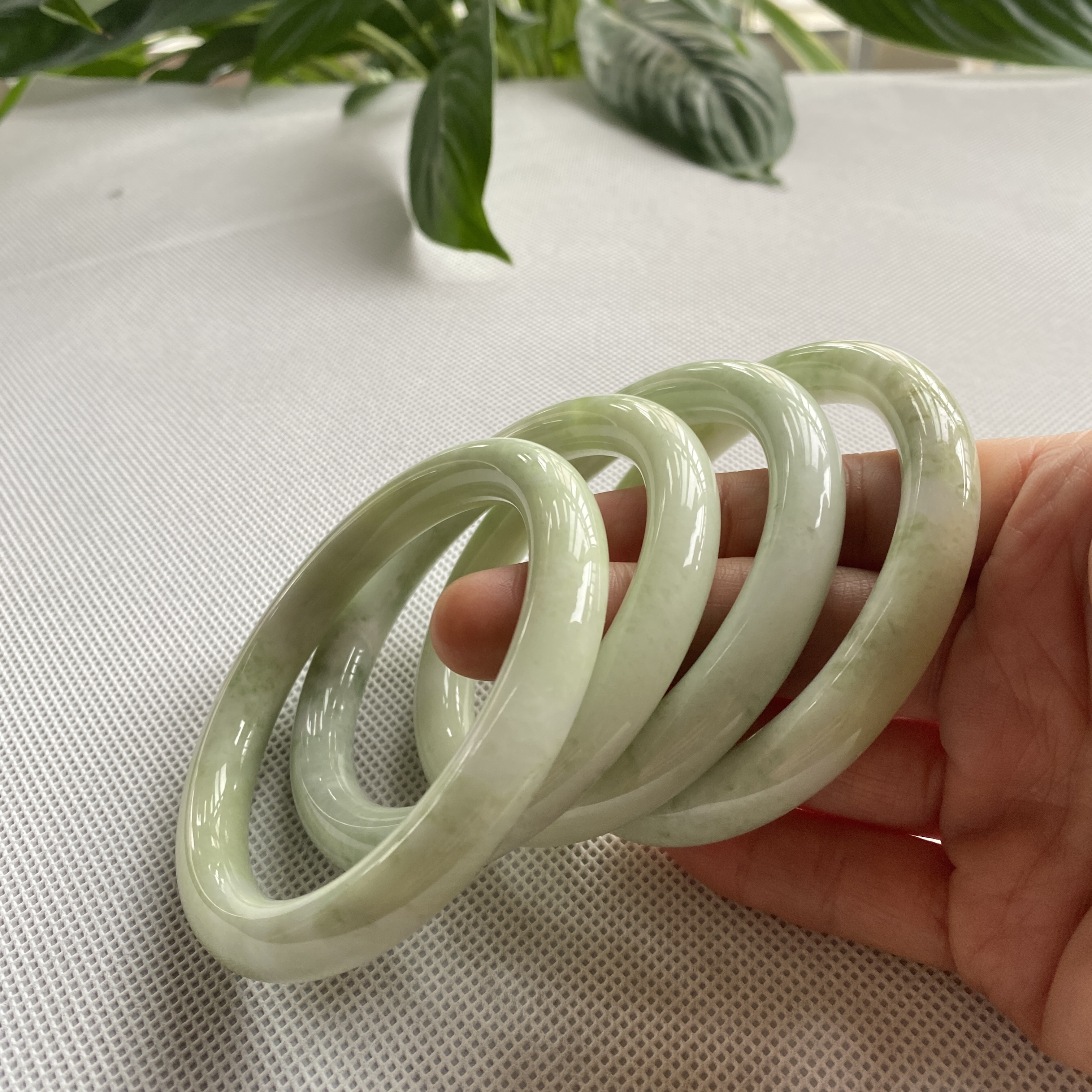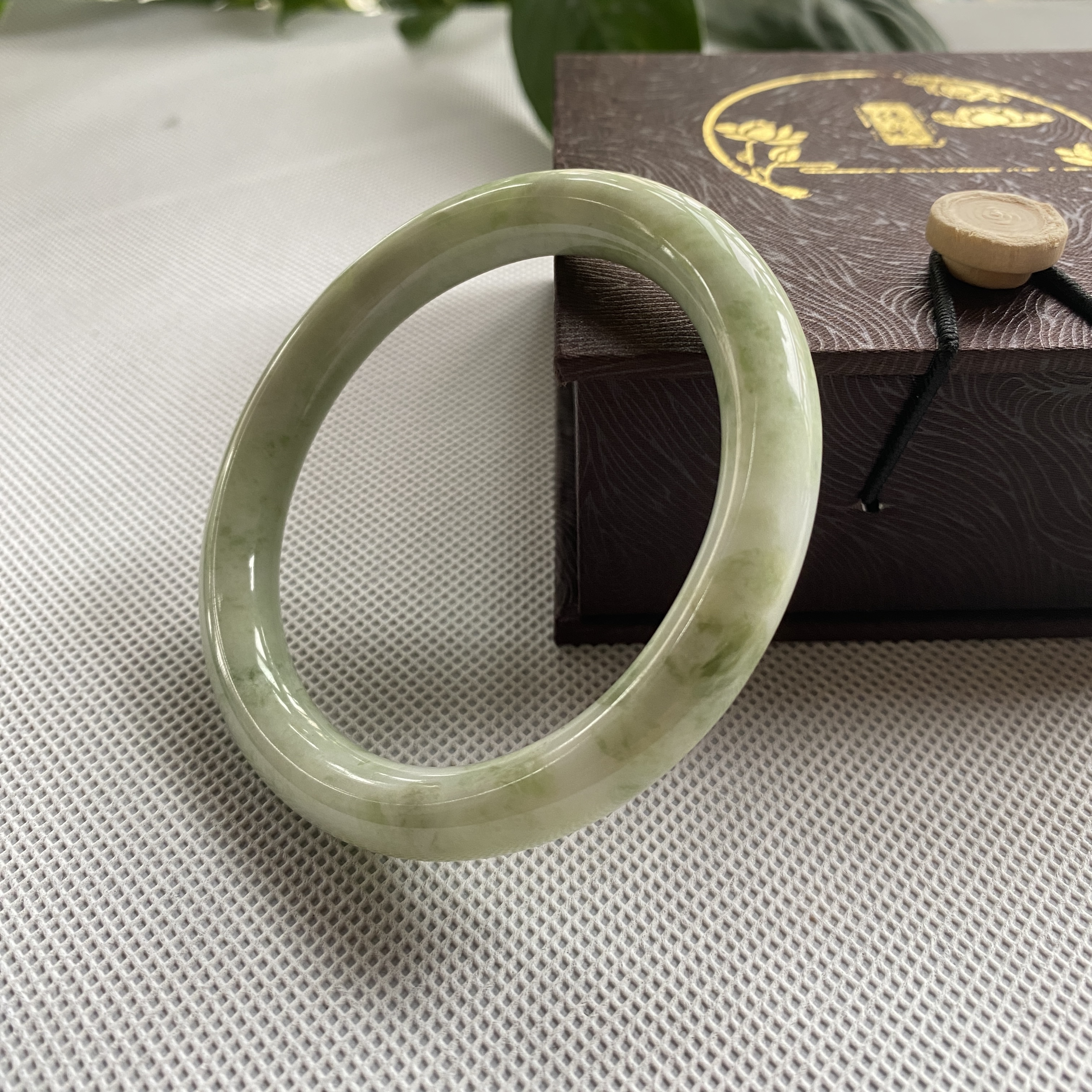 陕西蓝田玉手镯天然正品翠玉条宽10mm圆条62圈口细腻温润带证礼盒
