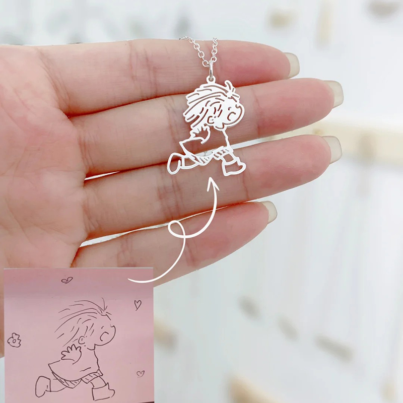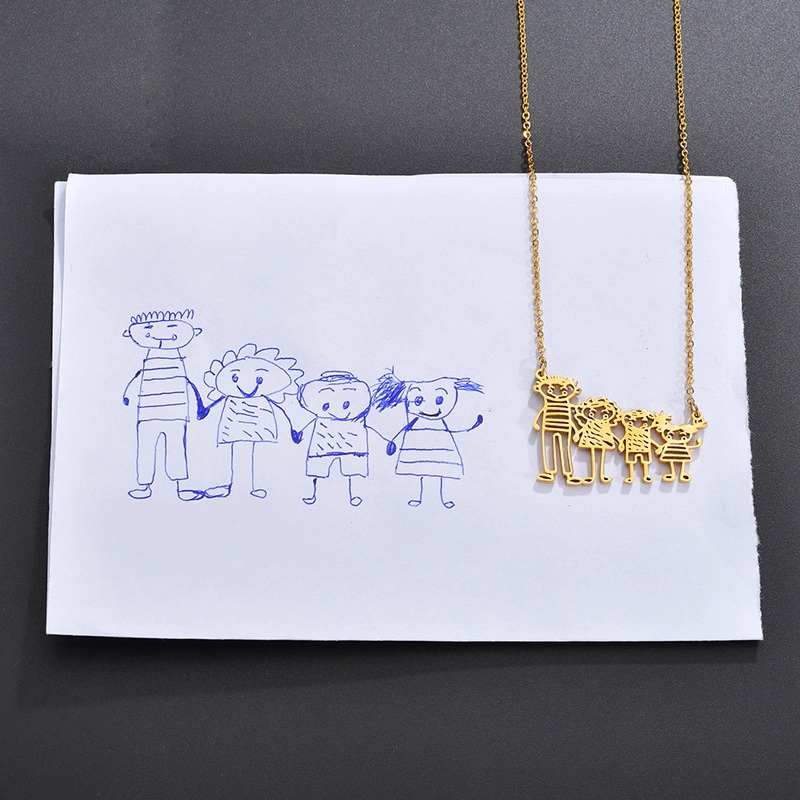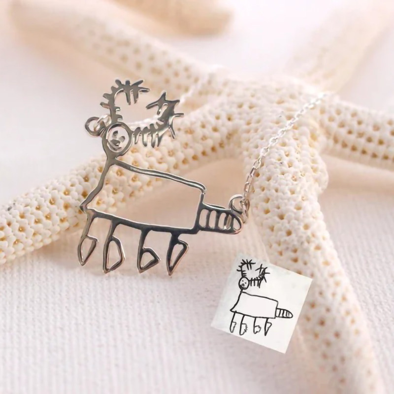 钛钢定制项链925纯银儿童画亲子来图加工手链送老婆妈妈小礼物diy