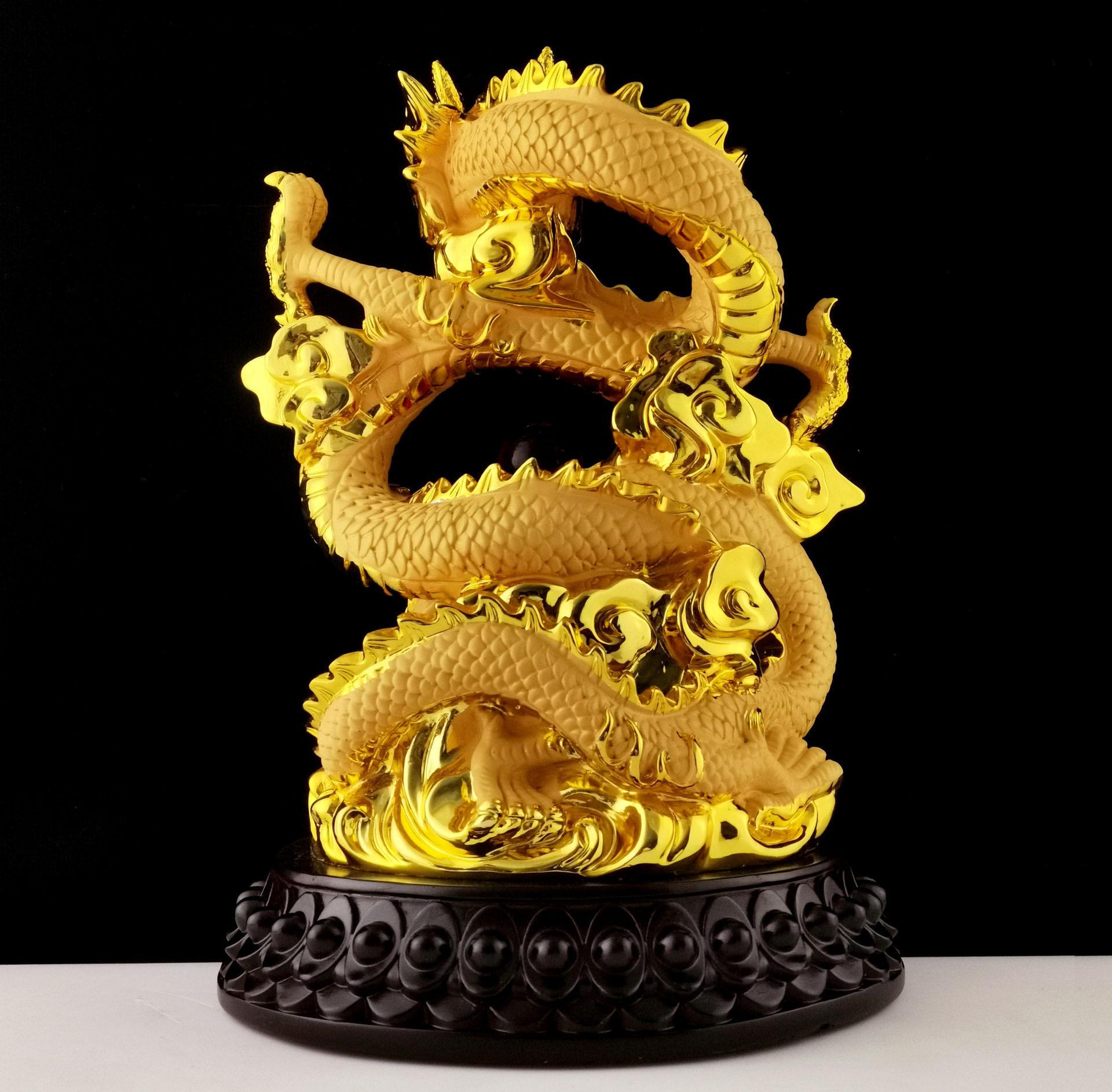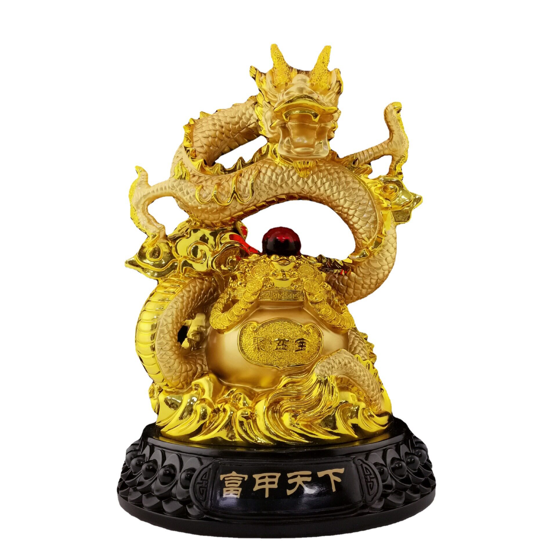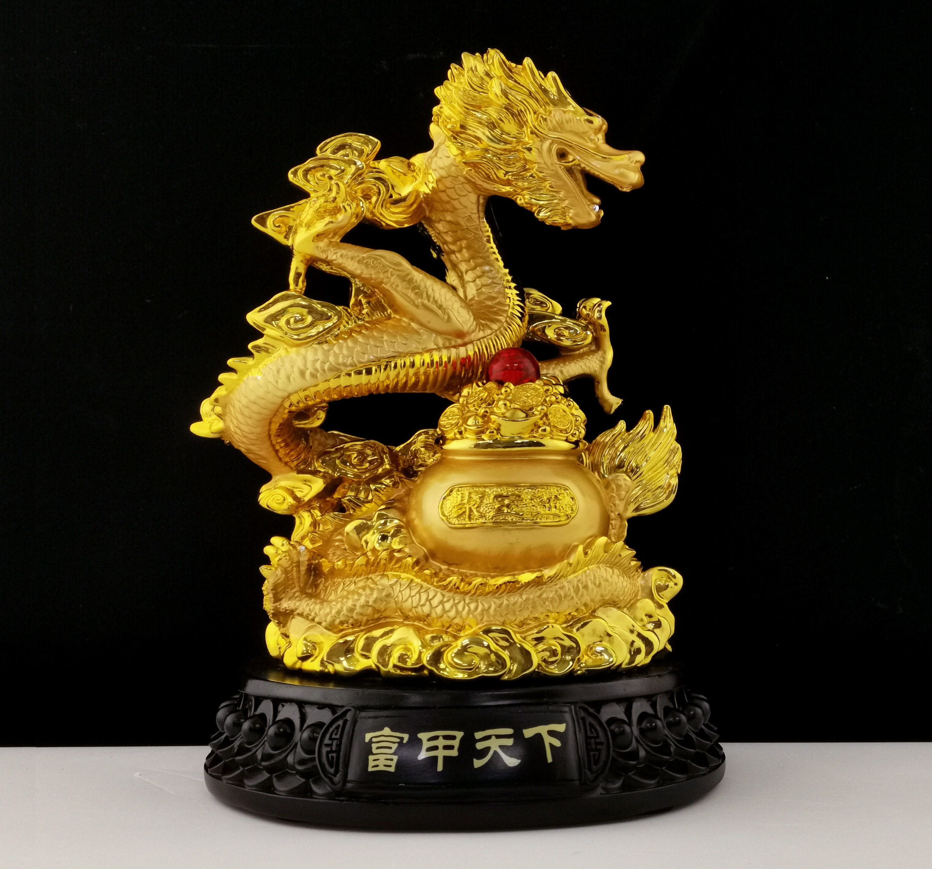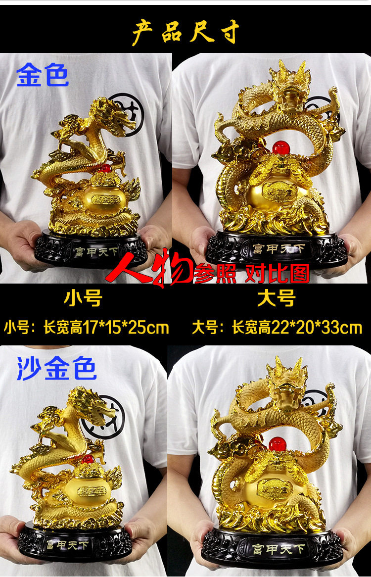 厂家树脂沙金龙摆件龙抓球珠聚宝盆中国龙办公室书桌店铺装饰