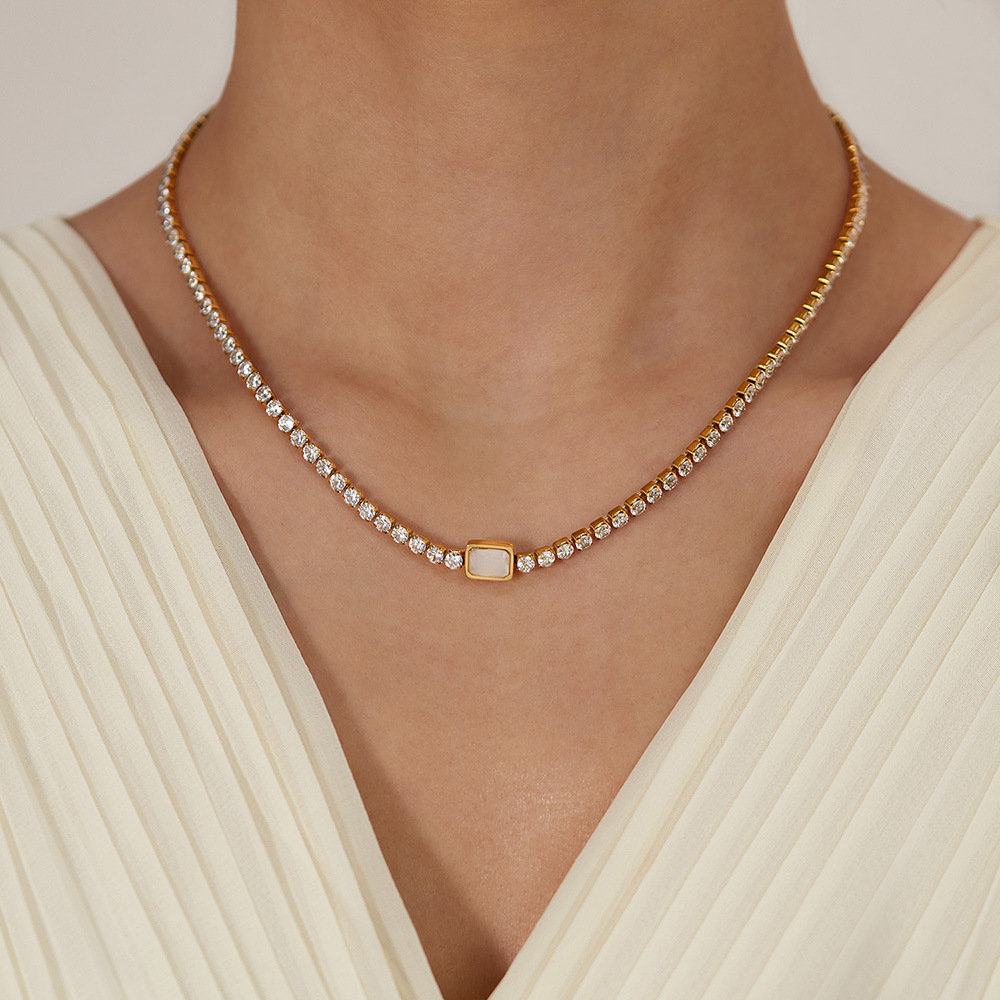 欧美法式气质不锈钢项链女镀金色满钻百搭锁骨链钛钢女友闺蜜项链