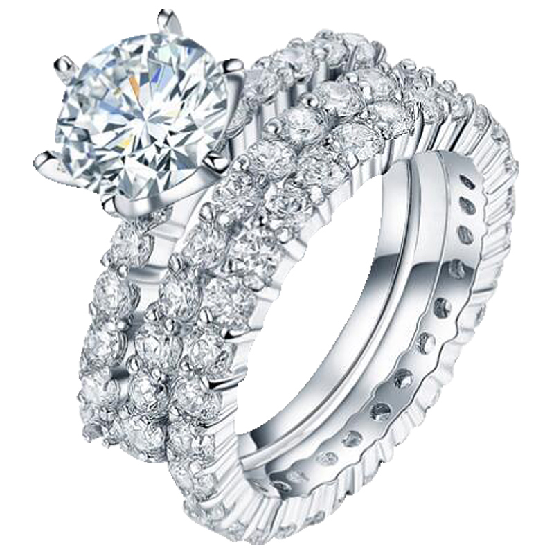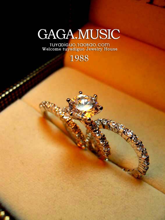 韩版时尚夸张6爪皇冠仿真2克拉钻戒3合一满钻豪华水晶戒指可拆分