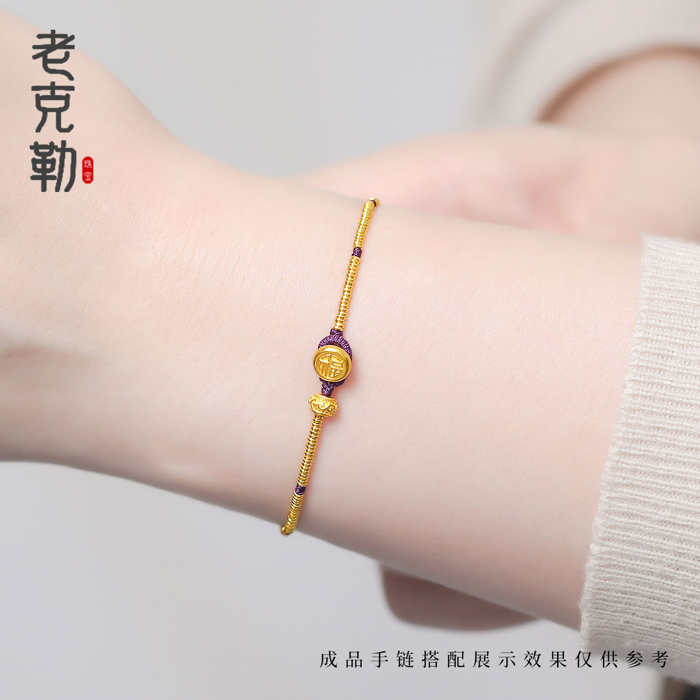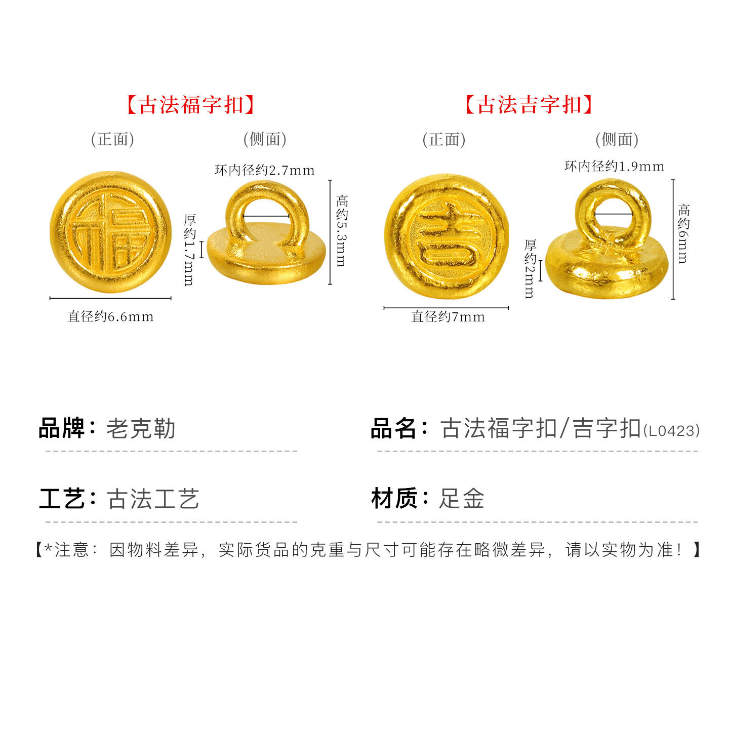 老克勒黄金古法福字扣吉字扣足金999配饰配件DIY编绳自用金扣子