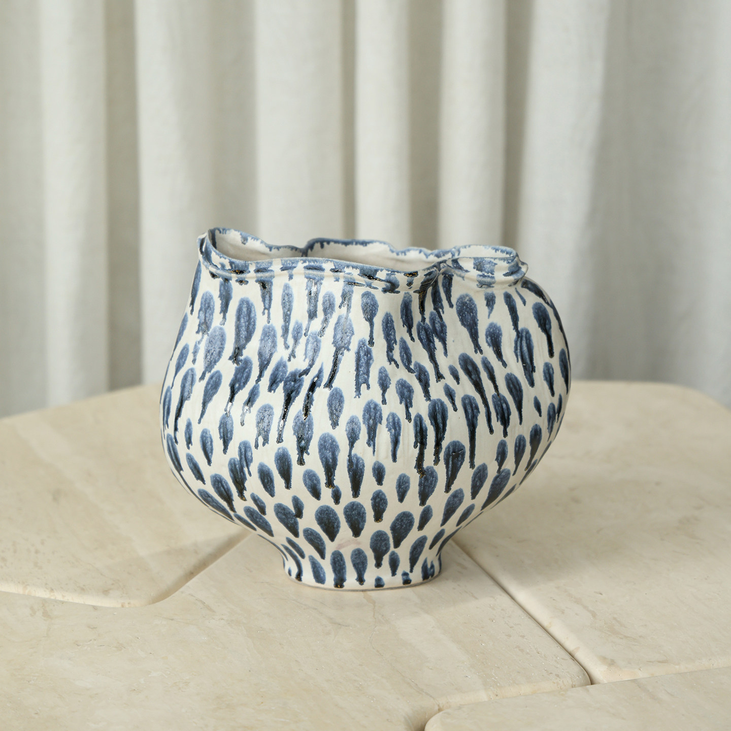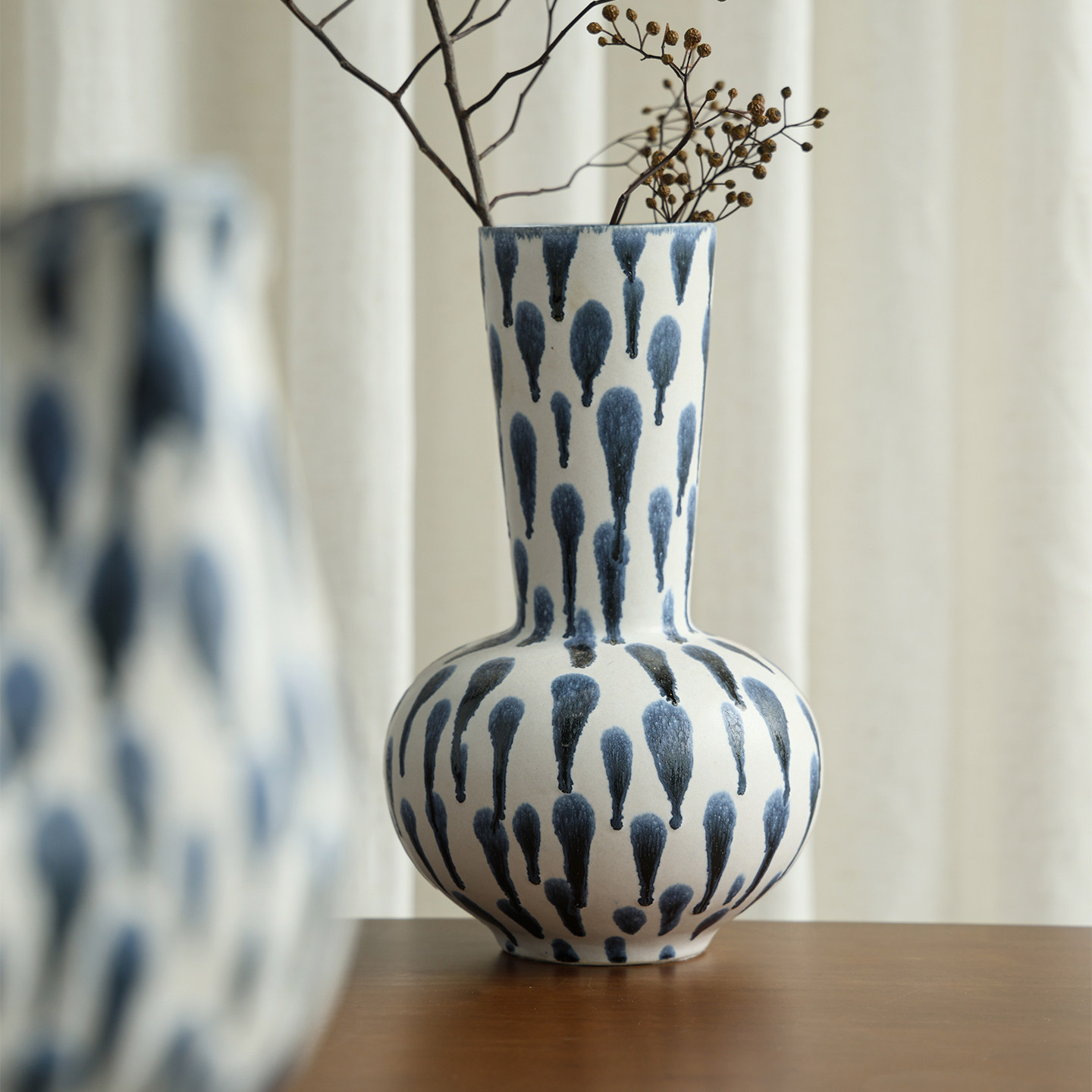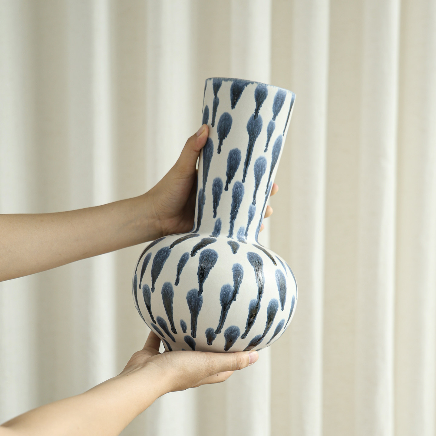 空合 蓝色水墨手绘艺术陶瓷花器 新中式侘寂风博古架民宿茶室摆件