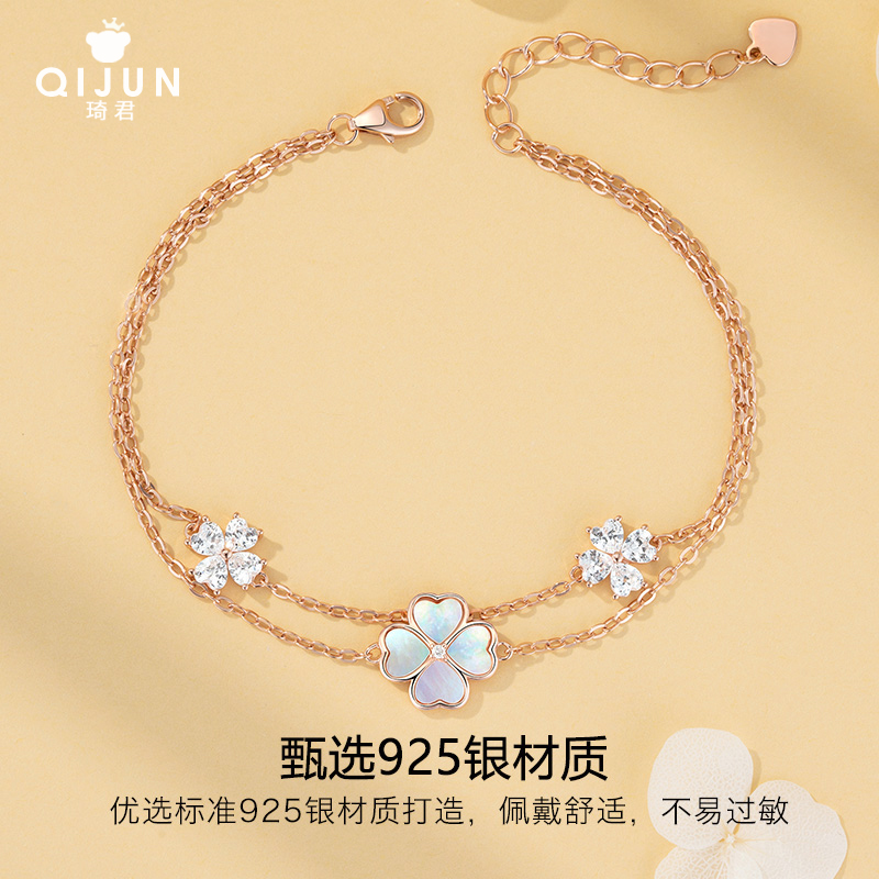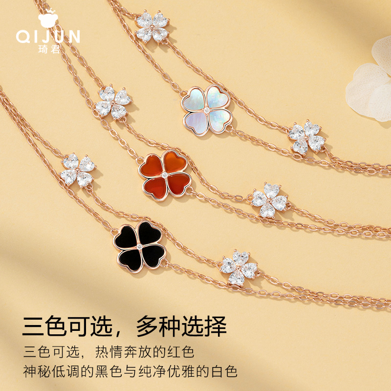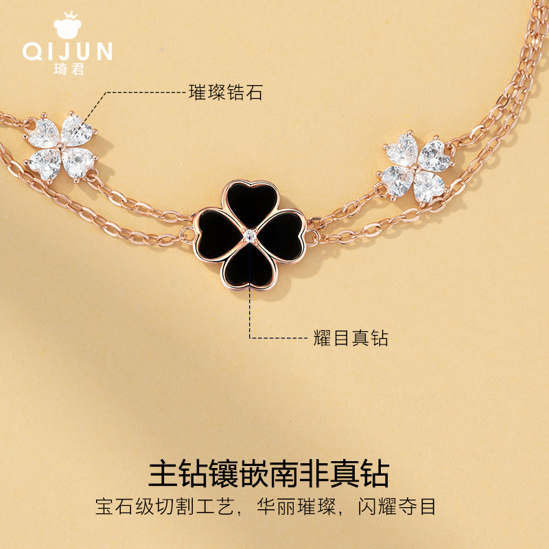 琦君钻石四叶草手链女款轻奢小众七夕情人节礼盒装礼物送女友老婆