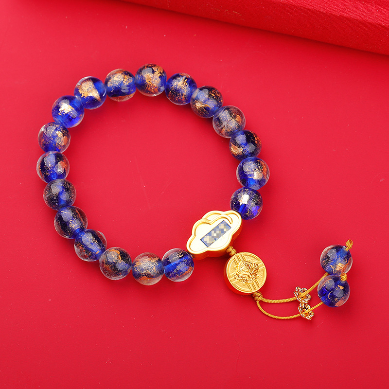 北京同款香灰琉璃手串金银箔琉璃如意提珠平安富贵念珠新中式手链