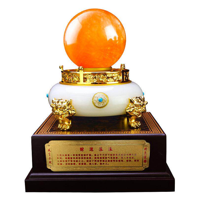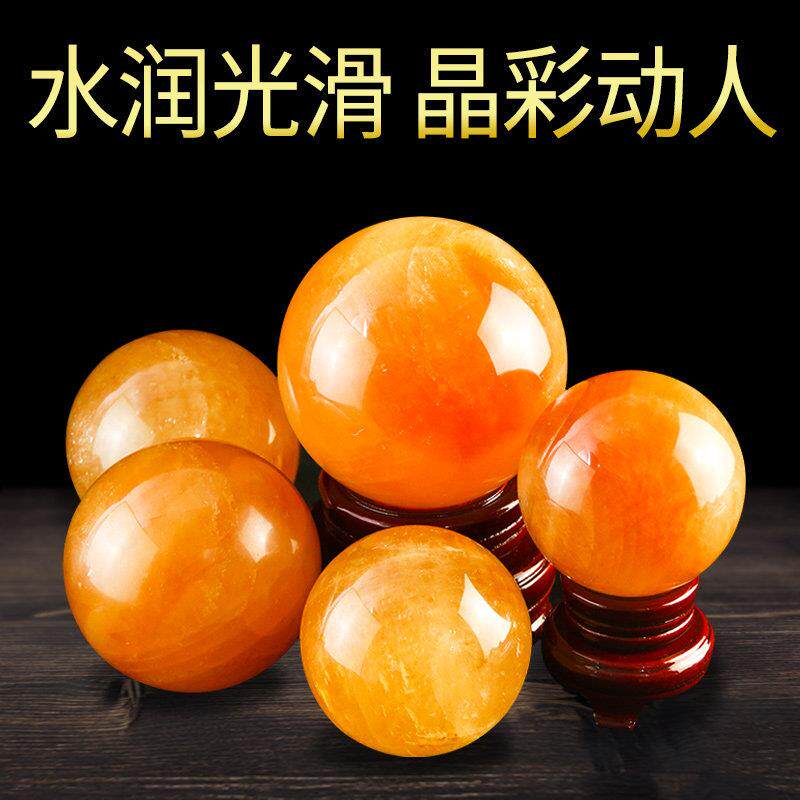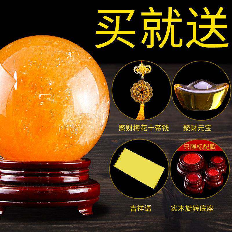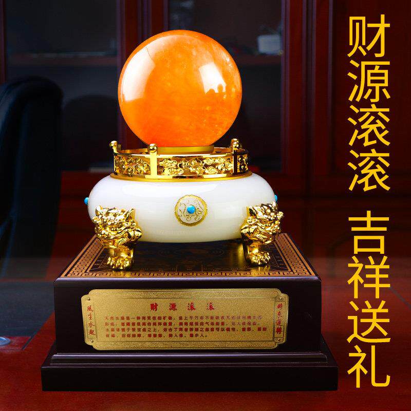 水晶球摆件天然黄色客厅玄关走廊家居装饰办公室乔迁新居开 业礼