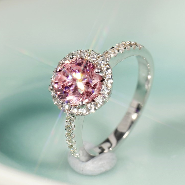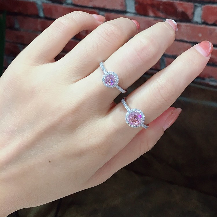 PT950铂金D色莫桑石群镶满钻戒指纯银1克拉粉钻结婚钻戒时尚日常